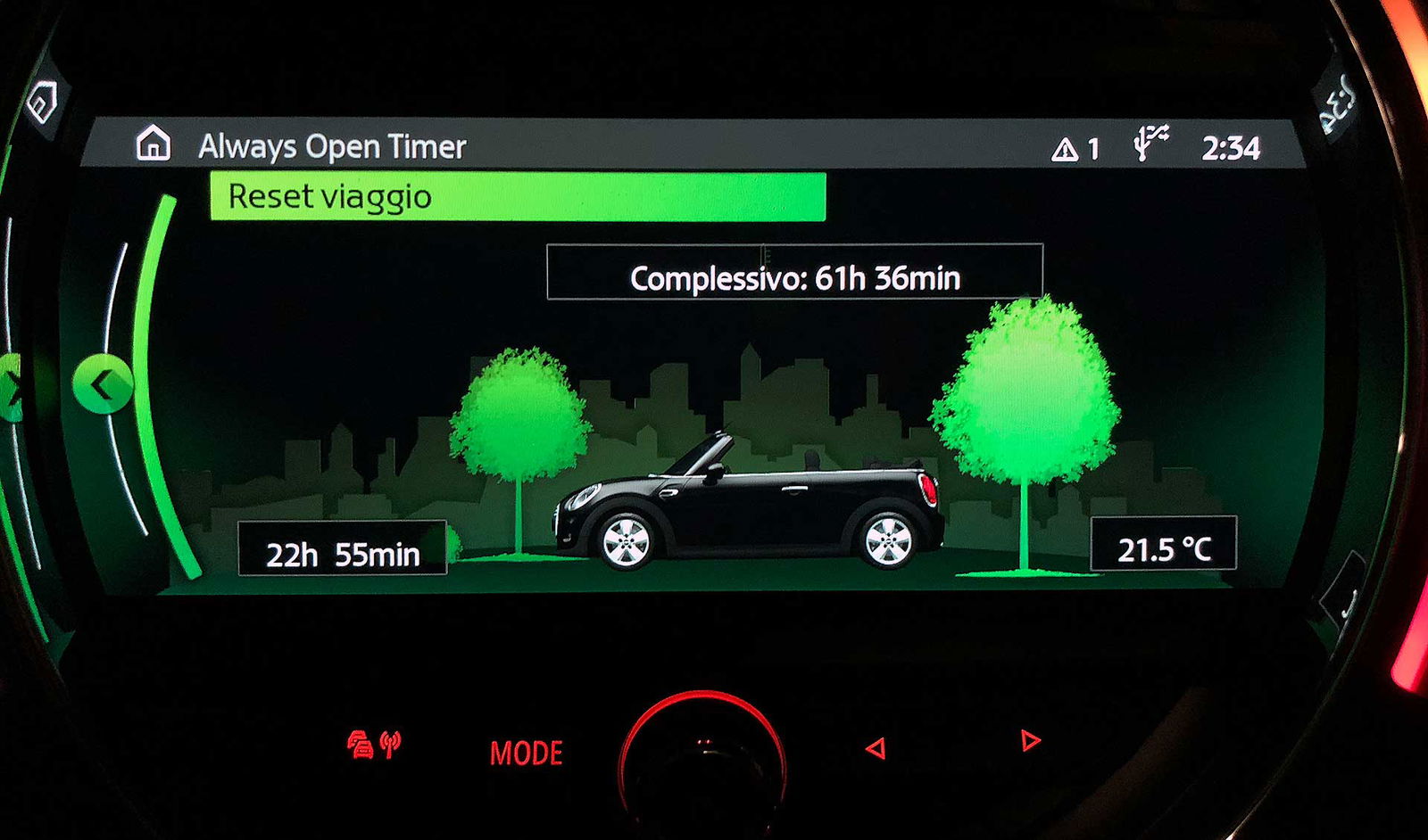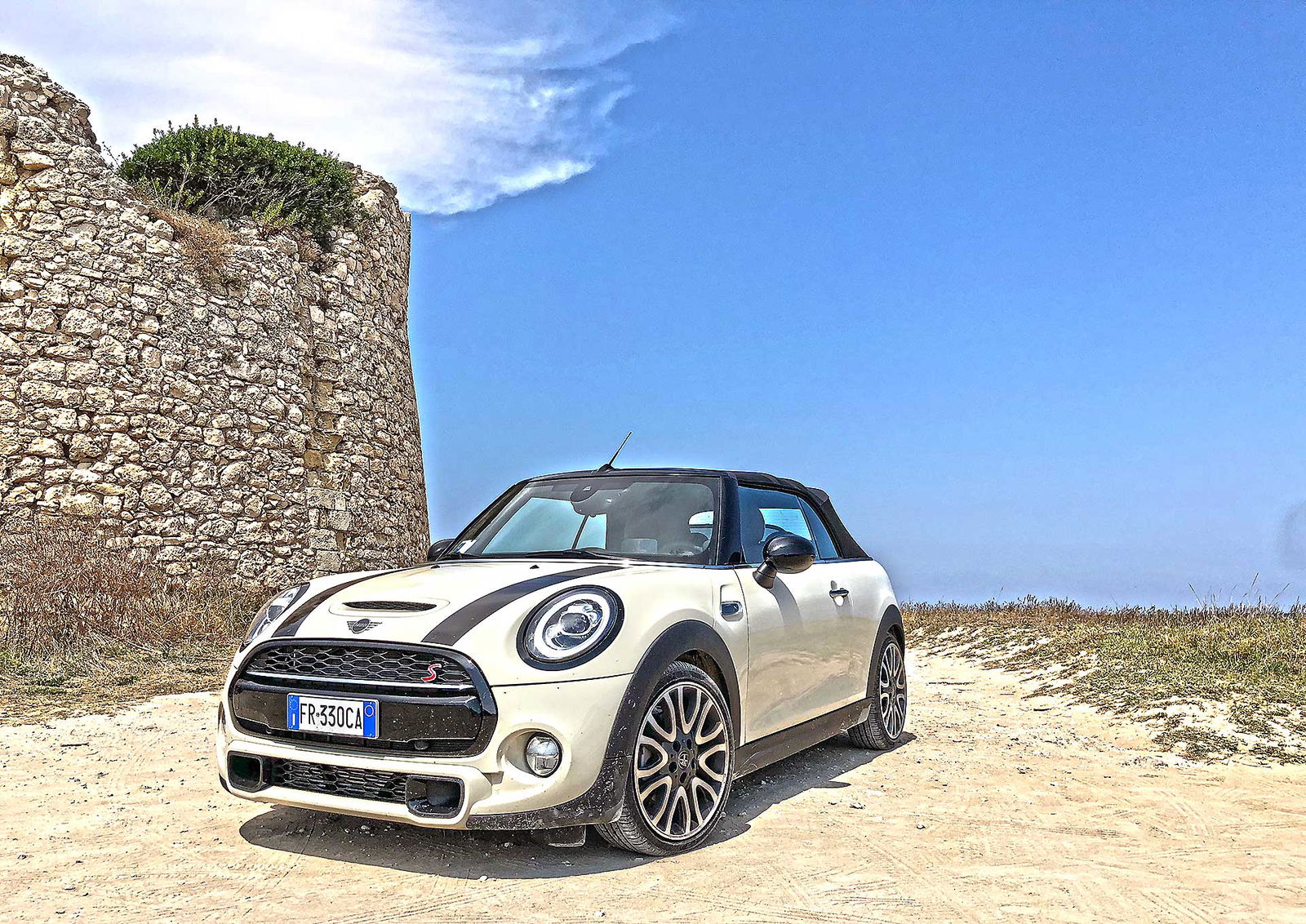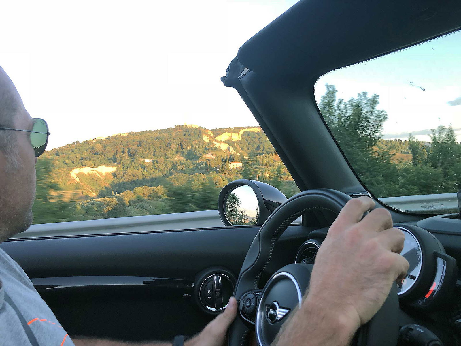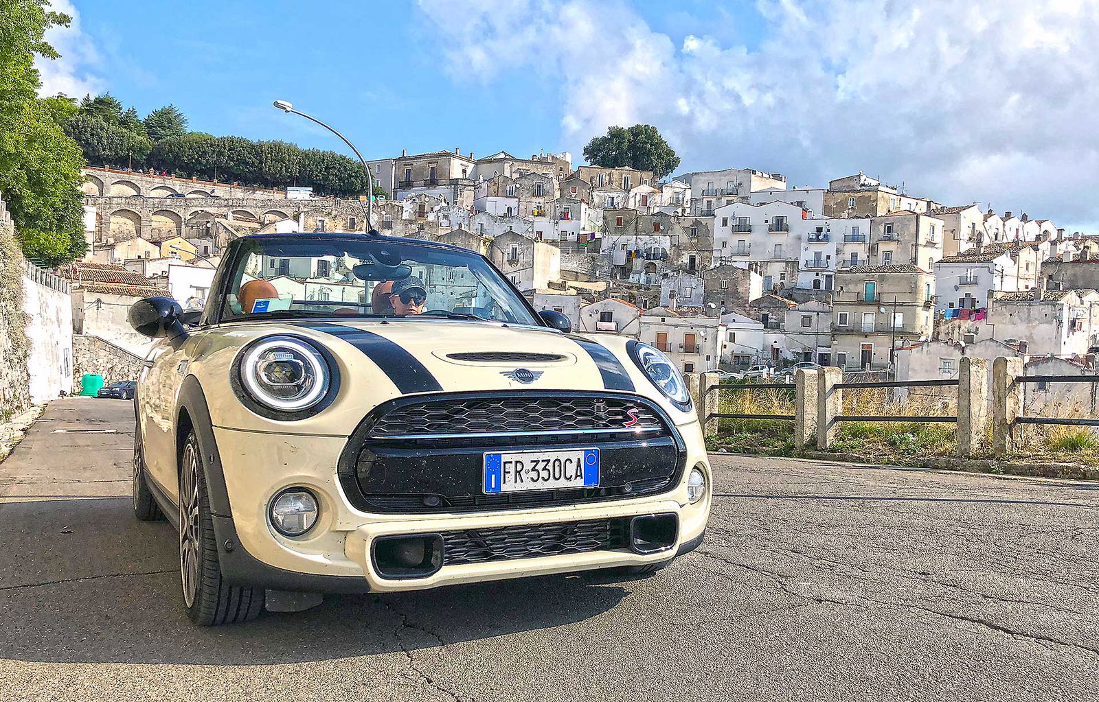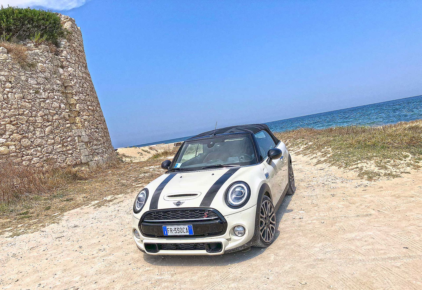 In questo modo puoi viverla scoprendo le tante facce di una cabrio come questa. Che, diciamo, può ovviamente viaggiare chiusa ma DEVE viaggiare aperta per quanto più tempo possibile. Carino, tra i mille “giochini” di cui la MINI (un’auto che per fortuna non ha mai voglia di smettere di giocare) dispone il timer “always open” che conta le ore in cui si guida a cielo aperto. Puntualmente resettato alla partenza, alla fine del nostro viaggio ne aveva contate oltre 20. Poche? No. Va detto che tra le tante cose che si scoprono viaggiando in cabrio e che non è sempre umanamente possibile viaggiare al sole. Soprattutto se si viaggia a latitudini meridionali, le ore centrali della giornata sono off limits, perché a certe ore il sole picchia come un fabbro sulla testa e nemmeno il cappellino di ordinanza è sufficiente.