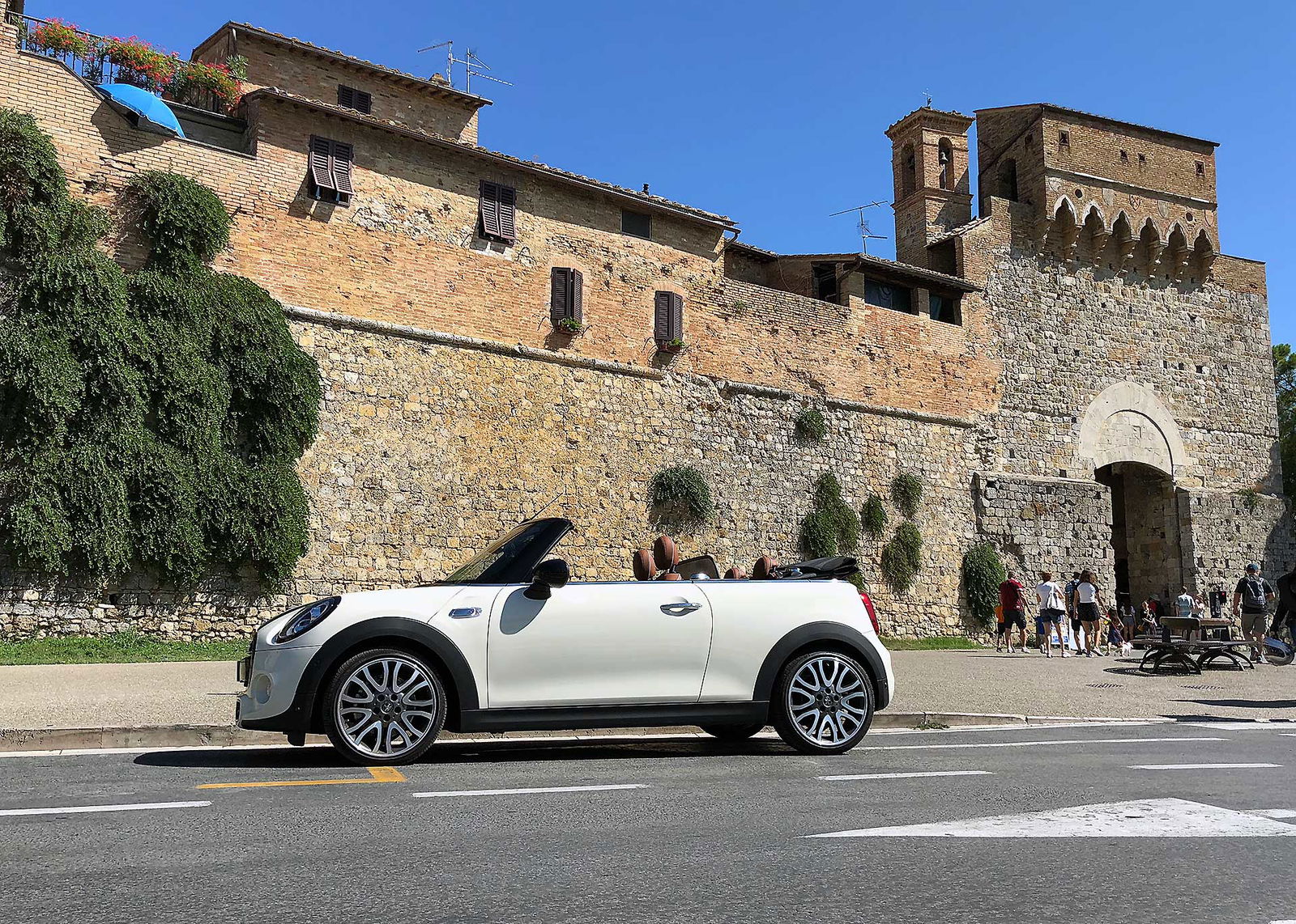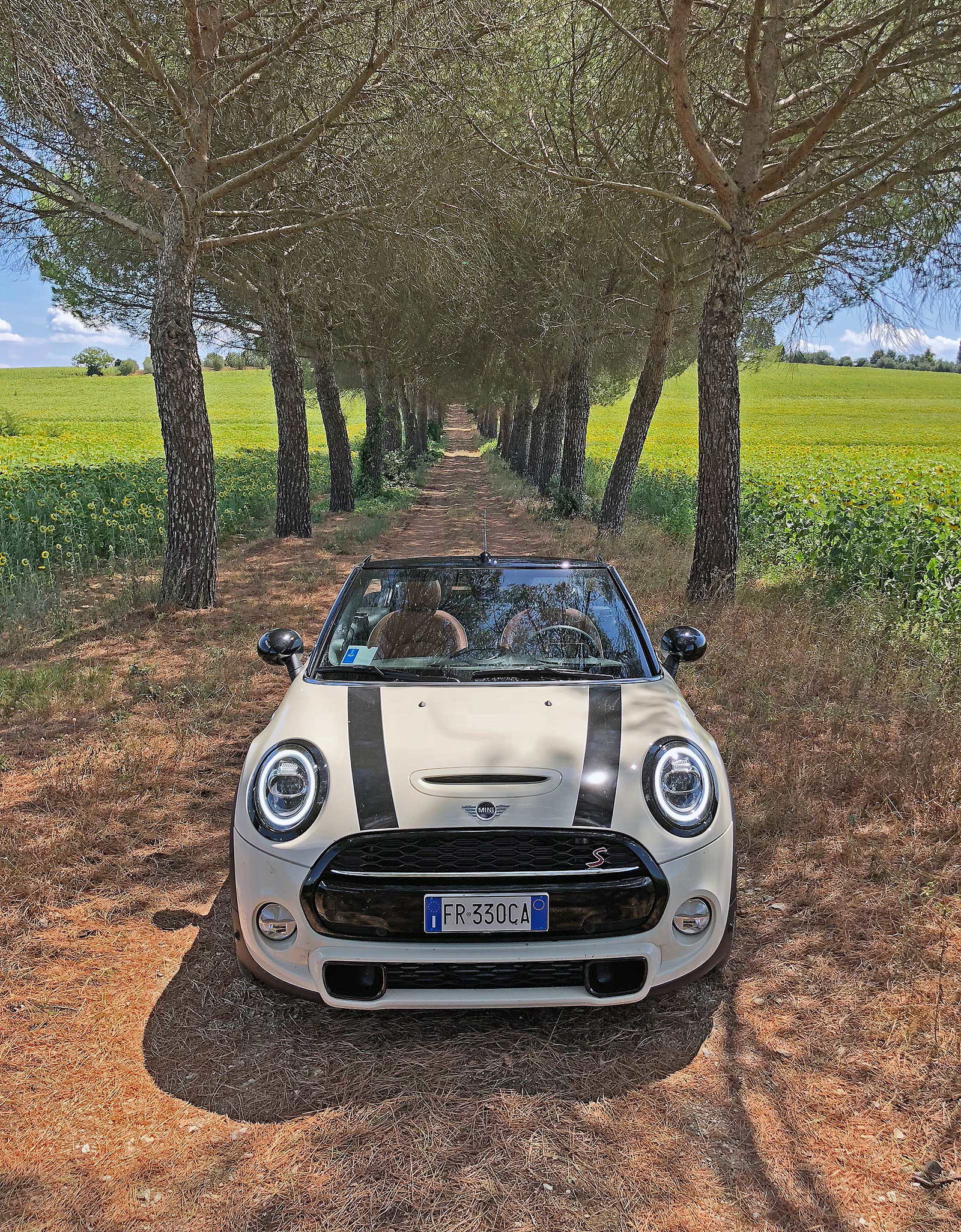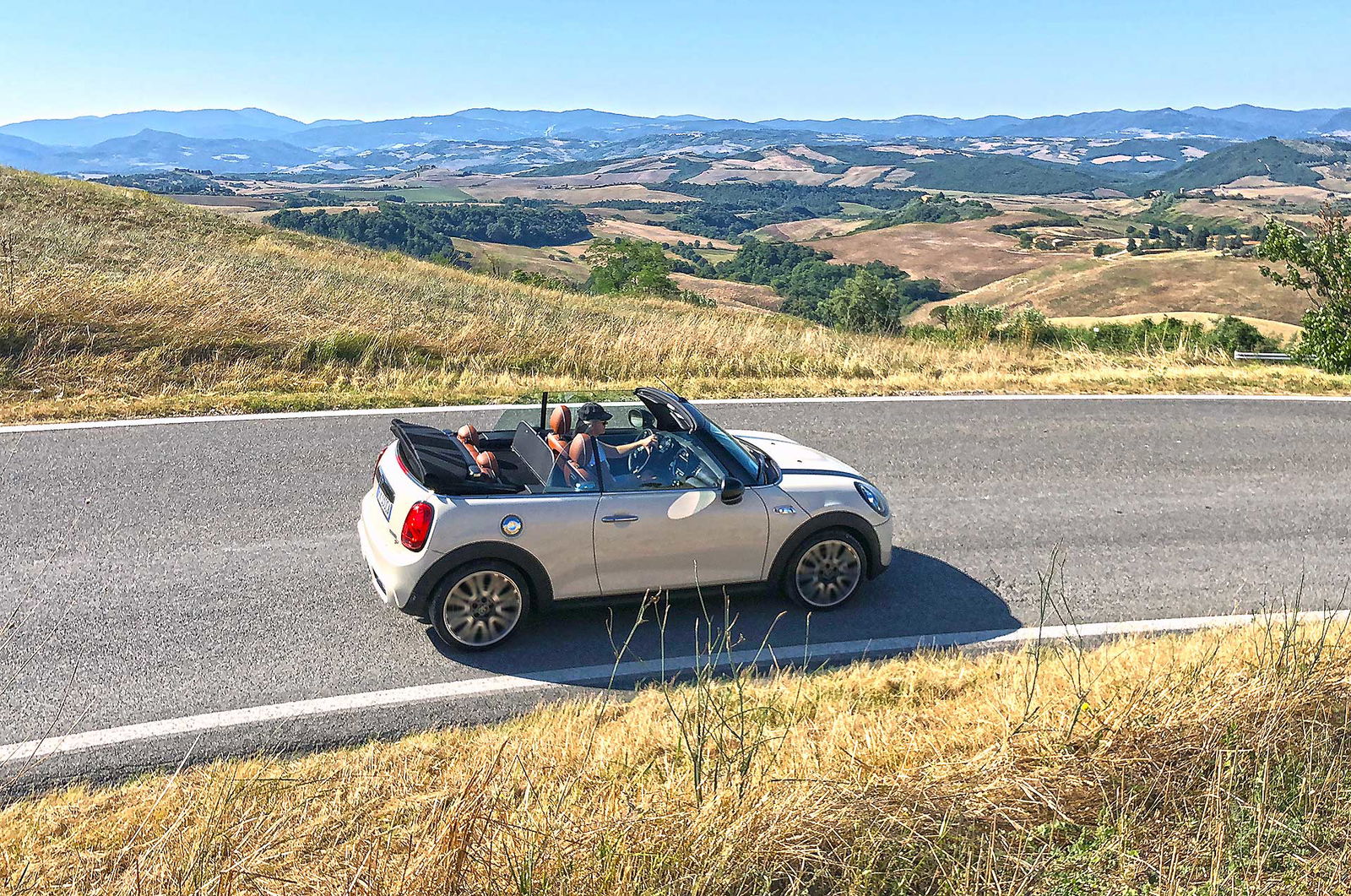 Caricati quindi i bagagli indispensabili (ma nulla di più) per una decina di giorni nel piccolo ma sfruttabile vano (aiutato nell’accesso altrimenti ostico dal sistema “easy access” che sgancia la parte inferiore della capotte consentendo di alzarla e inserire senza fatica i borsoni), siamo pronti per il nostro viaggio lungo lo stivale. Un viaggio che la MINI invoglia ad allungare, prendendo la strada più lunga e bella e non la più breve e comoda. Non vi stupisca quindi il fatto che per raggiungere la destinazione finale (Santa Maria di Leuca) siamo passati da Parma, La Spezia, Volterra, San Giminiano, Cortona, Spoleto, Civitanova Marche, tutto il periplo del Gargano, Matera. Tanta strada statale che porta a scoprire un’Italia meravigliosa, da ogni punto di vista. Borghi arroccati traboccanti di storia, campi di girasoli, campi di grano, panorami mozzafiato che dalla montagna vedono il mare. Tutto “cucito” da strade, a volte sconnesse altre perfette, che attraversano Appennini e montagne, ma soprattutto non sono quasi mai rettilinee o noiose.