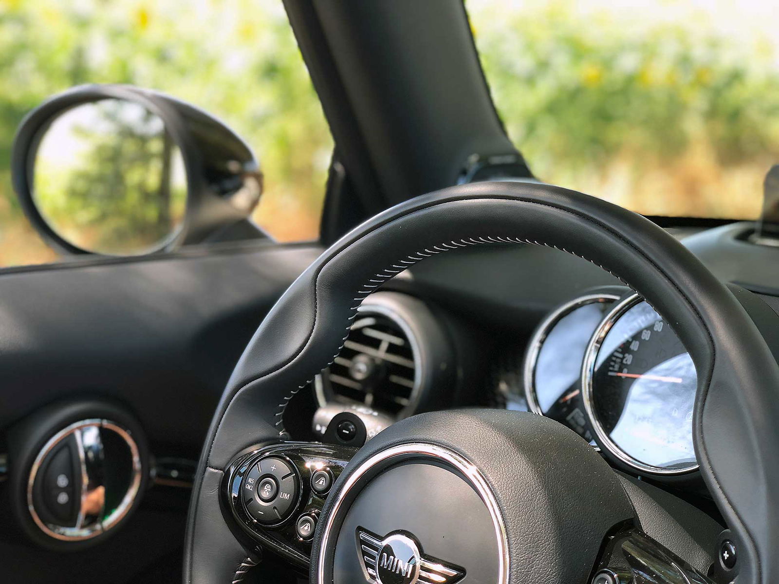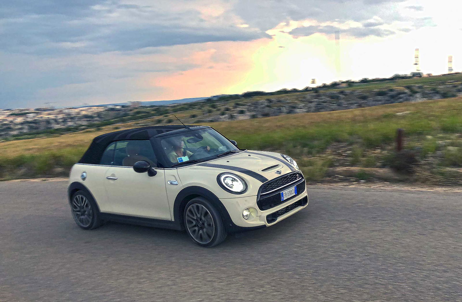 Strade perfette per la MINI Cabrio che di curve si nutre, e ti nutre. Acceleratore reattivo, sterzo diretto, pensi alla traiettoria e lei la ha già fatta; sebbene sia diventata più “matura” e forse meno estrema e kartistica rispetto alla prima serie, la MINI ti lascia sul palato quel bel sapore che solo le auto di rango riescono a lasciare dopo che le hai guidate. Senza il tetto in metallo, la scocca diventa un pelo più flessibile e in questo ci guadagna il comfort -soprattutto nelle mappature “Mid” e “Green” quando le sospensioni lavorano un po’ più rilassate- che concede anche lunghe giornate di guida senza spezzarti la schiena. La mappatura “Sport” invece tira la MINI come un giaguaro pronto all’attacco, l’acceleratore è ancora più sensibile, il rollio soccombe all’assetto rigido la precisione di guida aumenta. Ma questa modalità di guida a parer mio va tenuta presente solo nel momento in cui si vuole guidare sul serio e la strada ci asseconda con un asfalto perfetto. Altrimenti… Keep calm, apri il tetto e goditi il viaggio. Il viaggio in cabrio è bello anche perché ti inocula il morbo dell’andamento lento, quel mood che ti porta a guidare rilassato godendoti tutto quel che ti sta intorno e… sopra.