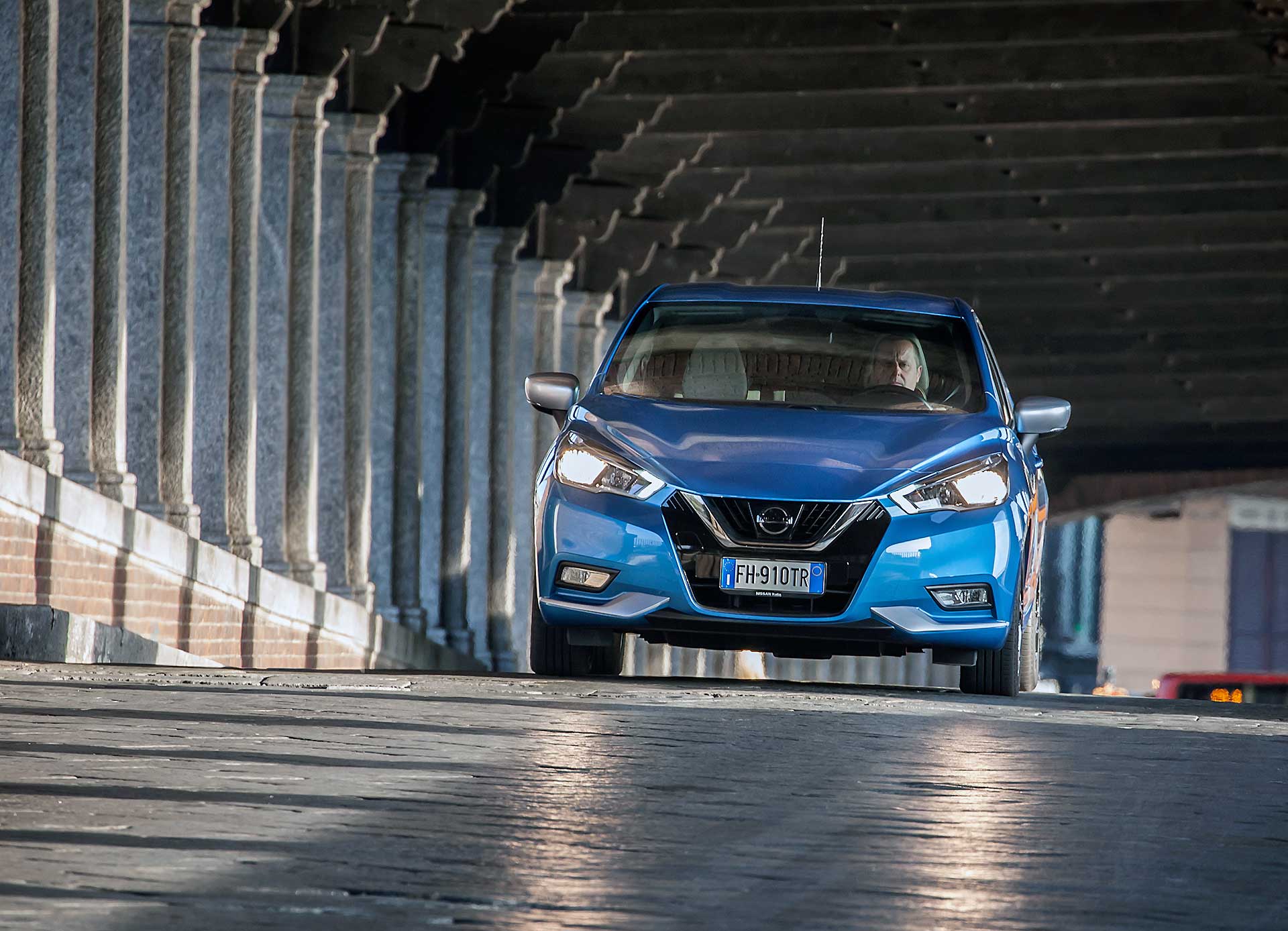 Gli interni si distinguono per l’aspetto moderno, creati con materiali “soft-touch”, come la plancia bicolore che Micra offre di serie. La scocca a cinque porte si avvale di caratteristiche ergonomiche che puntano al comfort dei passeggeri. I lunghi viaggi si stemperano molto bene beneficiando di un bel pacchetto di tecnologia che Nissan ha previsto per questa compatta. A cominciare dal Touch Screen da 7″ che integra navigatore con informazioni sul traffico, presa USB con connettività per i-Pod, Bluetooth (audio e telefono), Touch screen con single-touch. Si sfrutta con piacere anche l’Hill Start Assist, un sistema di assistenza per le partenze in salita. Nissan ha costruito la nuova Micra arricchendola di dispositivi di controllo solitamente appannaggio di auto di segmento superiore. Si può contare ad esempio sull’Intelligent Lane Intervention, un sistema di segnalazione e prevenzione di cambio corsia involontario che si attiva con una leggera vibrazione del volante e i freni dell’auto vengono azionati singolarmente per riportare l’auto nella giusta corsia. Sul fronte sicurezza si aggiunge anche il sistema di frenata d’emergenza intelligente con riconoscimento dei pedoni.Mangia la mia polvere