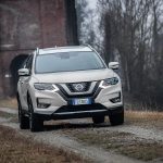 MUSCOLI E DINAMISMOL’imponente calandra di questa X-Trail MY 2018 richiama su di sé lo sguardo. È muscolosa e spigolosa ed assieme ai proiettori anteriori dalla caratteristica forma a freccia pare convogliare il resto dell’auto verso la strada da percorrere. La stessa sensazione si percepisce non appena saliti a bordo: le nervature del cofano proiettano piacevolmente in avanti lo sguardo del guidatore. I grandi specchi retrovisori non fanno sentire la mancanza di un lunotto posteriore più grande e le nervature su di essi sembrano riprendere lo stile di quelle presenti sul cofano.Nissan X-Trail 1.6 dCi 130 CVT 2WD Tekna bianca frontale sotto un'arcata di mattoni rossiSICUREZZA E DINAMICALa versione in prova è la più ricca in termini di equipaggiamento. Particolare cura è dedicata ai sistemi di sicurezza e assistenza alla guida. Troviamo i sistemi Nissan Safety Shield e Safety Shield Plus, i quali hanno il compito di gestire le frenate di emergenza, i cambi di corsia involontari e l’accensione automatica dei fari abbaglianti. Si propongono inoltre di assistere il guidatore nei parcheggi e verificarne l’attenzione durante la marcia. Nissan propone un particolare sistema a controllo elettronico chiamato Intelligent Ride Control che si occupa di migliorare la dinamica del veicolo. Generalmente quando un’auto viaggia sulle irregolarità del manto stradale si instaura un fenomeno di beccheggio che gioca a sfavore del comfort. Tramite l’azione su gas e freni il sistema installato su X-Trail genera in modo automatico movimenti opposti tali da compensare questo fastidioso fenomeno naturale.Nissan X-Trail 1.6 dCi 130 CVT 2WD Tekna vista laterale in paesaggio di campagnaEQUIPAGGIAMENTI Volante e sedili in pelle riscaldabili, tetto panoramico apribile, navigatore satellitare con schermo da 7’’, sistema audio Bose con 8 altoparlanti e cambio automatico completano il ricco corredo di dotazioni di serie. L’equipaggiamento è così completo da non far venire voglia nemmeno mettere mano alla lista degli optional. Tutto questo, ovviamente si paga, con oltre 37 mila euro del prezzo finale. Considerando che l’auto in prova monta la motorizzazione 1.6 da 130 cavalli abbinata alla trazione anteriore, si tratta di un importo significativo.VOCAZIONE STRADALESpecialmente in questa versione a due ruote motrici, la SUV Nipponica si propone più come una station wagon dalla posizione di guida rialzata che come compagna di avventure fuoristrada. Ma del resto questa è la chiave del successo di questi SUV “urbani”. Gli pneumatici stradali di serie confermano questa vocazione. La possibilità di installare la terza fila di sedili rende questa X-Trail adatta a famiglie stanche del monovolume dalla linea classica, auto che ormai si sono quasi estinte come i dinosauri. Il cambio CVT a variazione continua è pensato sia per le continue ripartenze del traffico cittadino sia per le lunghe tratte autostradali.Nissan X-Trail 1.6 dCi 130 CVT 2WD Tekna bianca in autostrada con dietro una cascina CONTINUA A LEGGERE –>  VAI ALLA PROVADRIVELa prima curiosità è scoprire se le grandi dimensioni e il baricentro alto non impediscano a quest’auto di comportarsi come una vettura prettamente stradale. Interessante anche capire se un motore di soli 1.600 centimetri cubi, abbinato al cambio CVT, sia in grado di trasportare senza troppo affanno la massa di quasi 1600 kg, garantendo prestazioni e consumi adeguati.DETTAGLI CHE CONTANOUna volta seduti al posto di guida, è inevitabile notare il volante a tre razze dal design moderno e sportiveggiante. Lo stile del quadro strumenti è invece più “classico”. Parlando di infotainment, ormai siamo in piena gara a chi ha lo schermo più grande. La X-Trail non è sul podio, tuttavia il touch screen (da 7”) si dimostra reattivo al tocco ed efficace nel funzionamento. Curati nello stile i sedili in pelle e il cruscotto lato passeggero, meno belle da vedere il carbonio attorno alle maniglie. Solo l’alzacristallo lato guida ha la funzione di risalita automatica.Nissan X-Trail 1.6 dCi 130 CVT 2WD Tekna interniPOSIZIONE DI GUIDA E DINAMICA PROMOSSIFacile trovare la posizione di guida che più ci è congeniale: sedile,poggiatesta e sterzo si regolano facilmente e con buona precisione. Sia la testa sia le spalle trovano completo appoggio. La visuale è alta e si domina la strada. Lo sterzo è preciso e, assieme a sospensioni sufficientemente reattive, garantisce un comportamento in curva rassicurante. L’intervento del sistema automatico del beccheggio non è avvertibile da parte del guidatore e non penalizza la fluidità di marcia. Se ci avventura su un fondo non asfaltato e sdrucciolevole, si avverte la mancanza della trazione integrale. Con le gomme di primo equipaggiamento la motricità risulta sufficiente solamente se la pendenza che andrete ad affrontare è limitata. Ma, ovviamente, chi prende in considerazione l’acquisto di una X-Trail 2WD ha ben presente questo limite. Ovvio che se nella vostra “avventura quotidiana” prevedete di affrontare spesso situazioni stradali avverse, il consiglio è quello di rivolgersi alla versione con trazione integrale.LAVORO DI SQUADRAMotore e cambio costituiscono un’accoppiata soddisfacente. La spinta e la progressione risultano adeguate nella maggior parte delle situazioni. Le ripartenze avvengono dolcemente e senza strappi e il kick-down è puntuale, non c’è ritardo nella risposta. Quando si rilascia il gas la Nissan X-Trail si aziona immediatamente modalità veleggio, limitando ovviamente il freno motore. In questi casi meglio quindi utilizzare il cambio in modalità manuale (che simula la presenza di 7 rapporti), fissando il rapporto corretto. Innesti e scalate rimangono precisi ma con questa impostazione si avverte di più che la potenza il motore soffre un po’ il peso. Col selettore in modalità “M” si evita che la lancetta del contagiri schizzi in alto quando si preme a fondo l’acceleratore, 