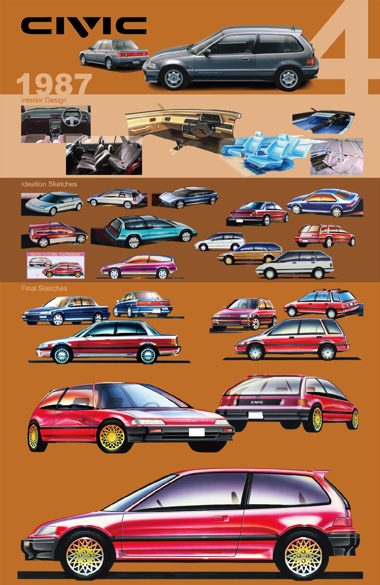 Nel 1987, la quarta generazione di Civic introdusse una nuova gamma di motori con il sistema Honda VTEC (Variable Valve Timing and Lift Electronic Control). Il meccanismo di fasatura variabile rivoluzionò la tecnologia dei motori, offrendo maggiori prestazioni agli alti regimi e un migliore consumo di carburante ai bassi regimi, facendo vincere alla Civic numerosi premi.