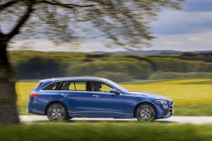 La nuova Classe C – SW e berlina – sostituisce un modello che in 7 anni ha convinto la bellezza di 2,5 milioni di clienti in giro per il mondo. Per la prova in anteprima della nuova station wagon ho scelto la 220d, ovvero quella mossa dal 2.0 turbodiesel 4 cilindri da 200 CV, che con l’aiutino dell’elettrico (la C220d è mild hybrid a 48V) tocca i 220 CV di potenza totale. La coppia massima? 440 Nm da 1.800 giri: se questi numeri non vi dicono molto, sappiate che su strada significa tanta spinta immediatamente disponibile, complice il cambio automatico a 9 rapporti.