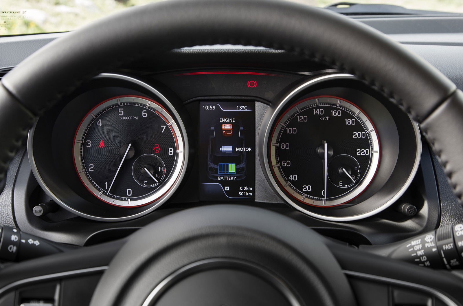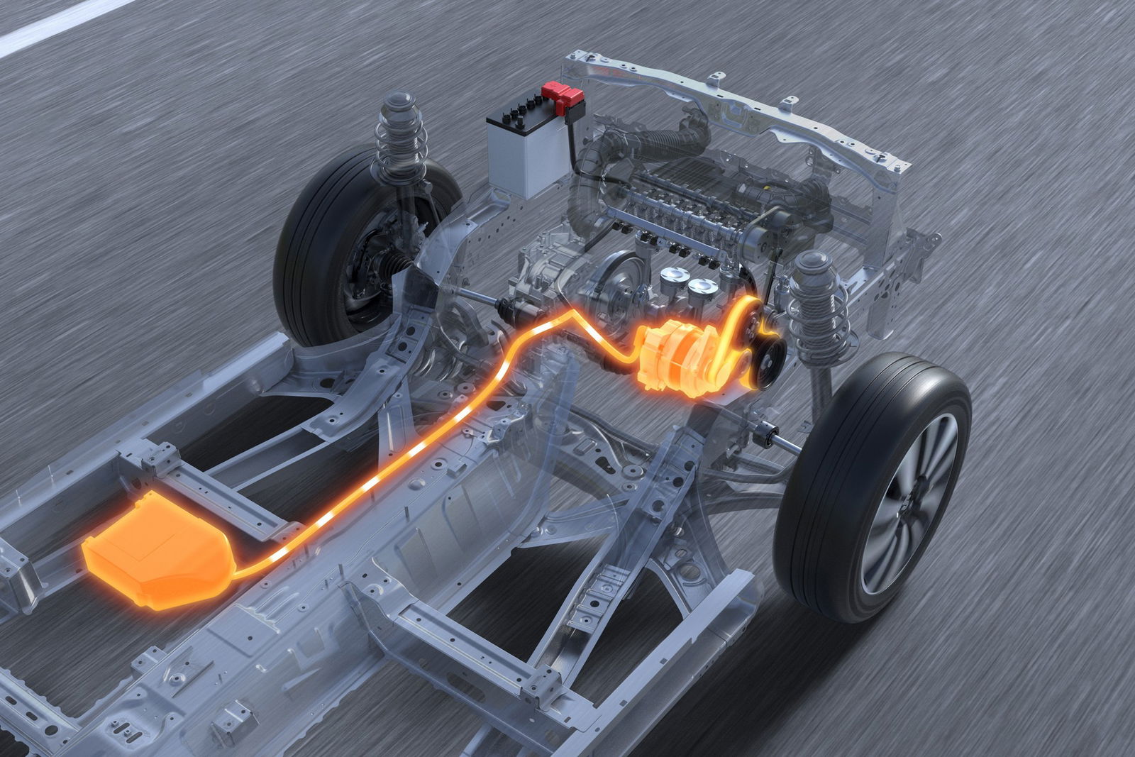 Batteria specifica per il sistema SHVSLa tecnologia SHVS si affida a un alternatore reversibile a tripla funzione: generatore durante la marcia, sgravando così l’unità termica di parte del fabbisogno d’energia della vettura, motorino d’avviamento dopo la sosta e sistema di recupero nelle fasi non di carico del propulsore, alimentando sia la batteria tradizionale sia la cella specifica agli ioni di litio, dal peso di 6,2 kg, collocata sotto il sedile anteriore per non intaccare lo spazio in abitacolo o la capacità del bagagliaio. Manca, nello specifico, un motore elettrico che consenta di parlare di tecnologia ibrida al 100%, sebbene ai fini dell’omologazione – con relativi vantaggi – non cambi nulla.