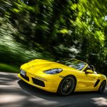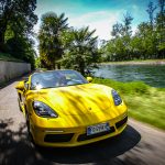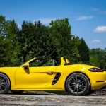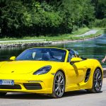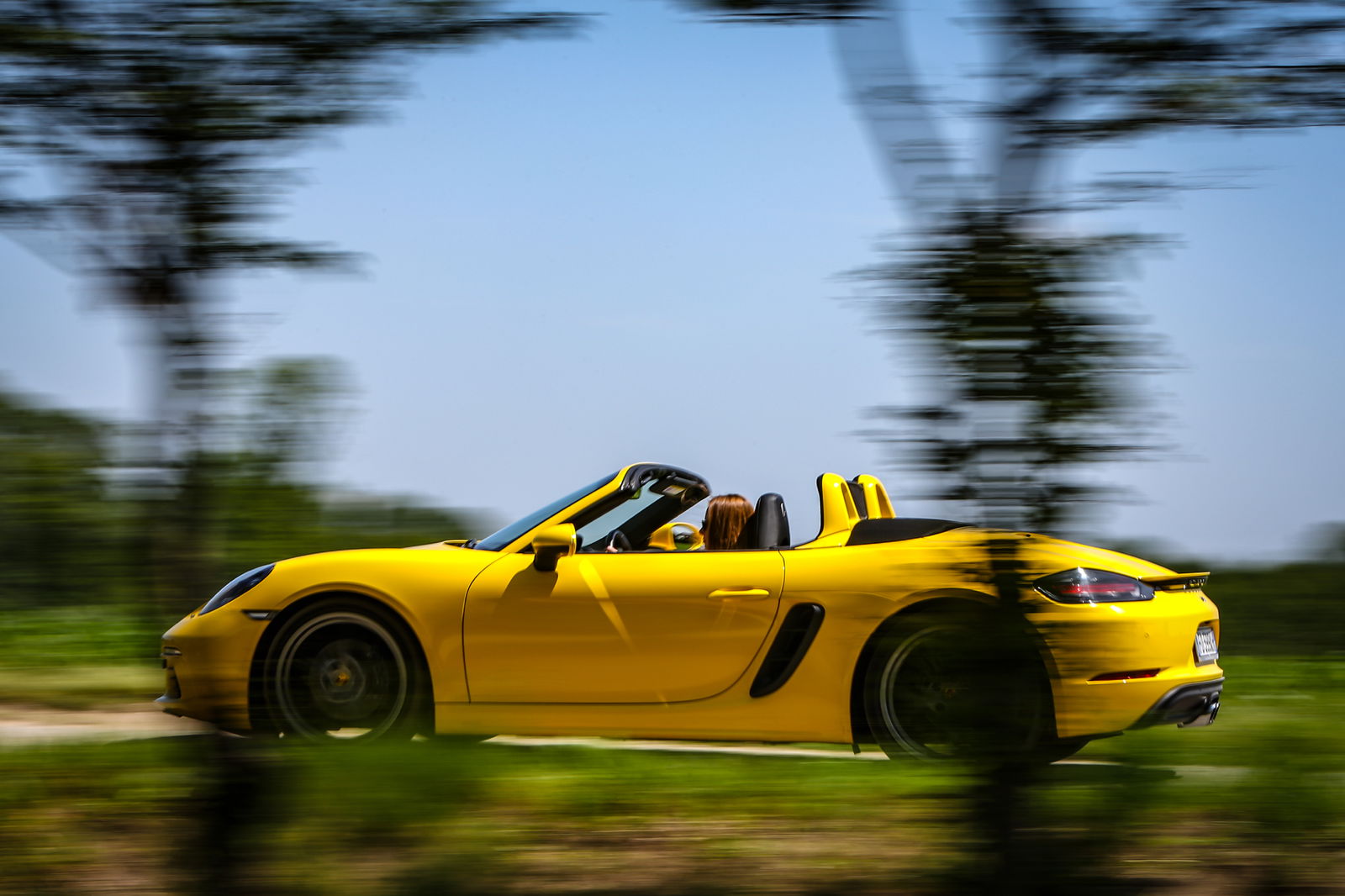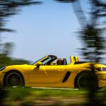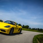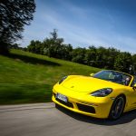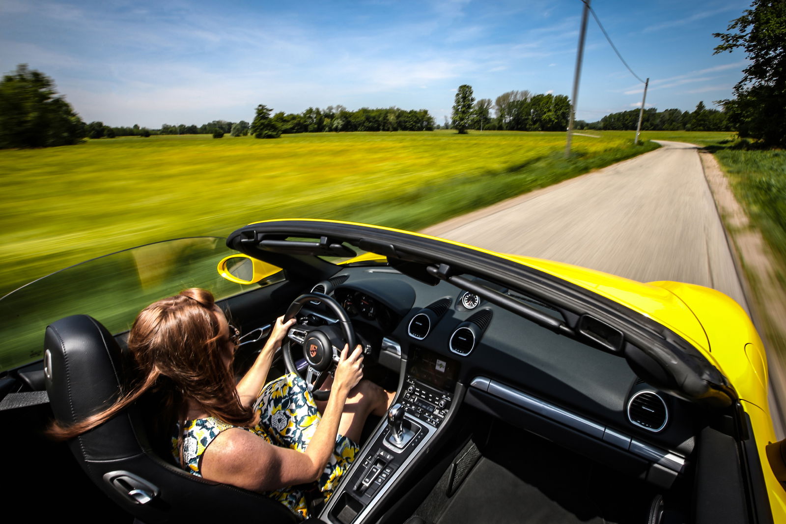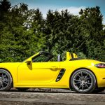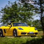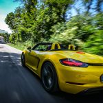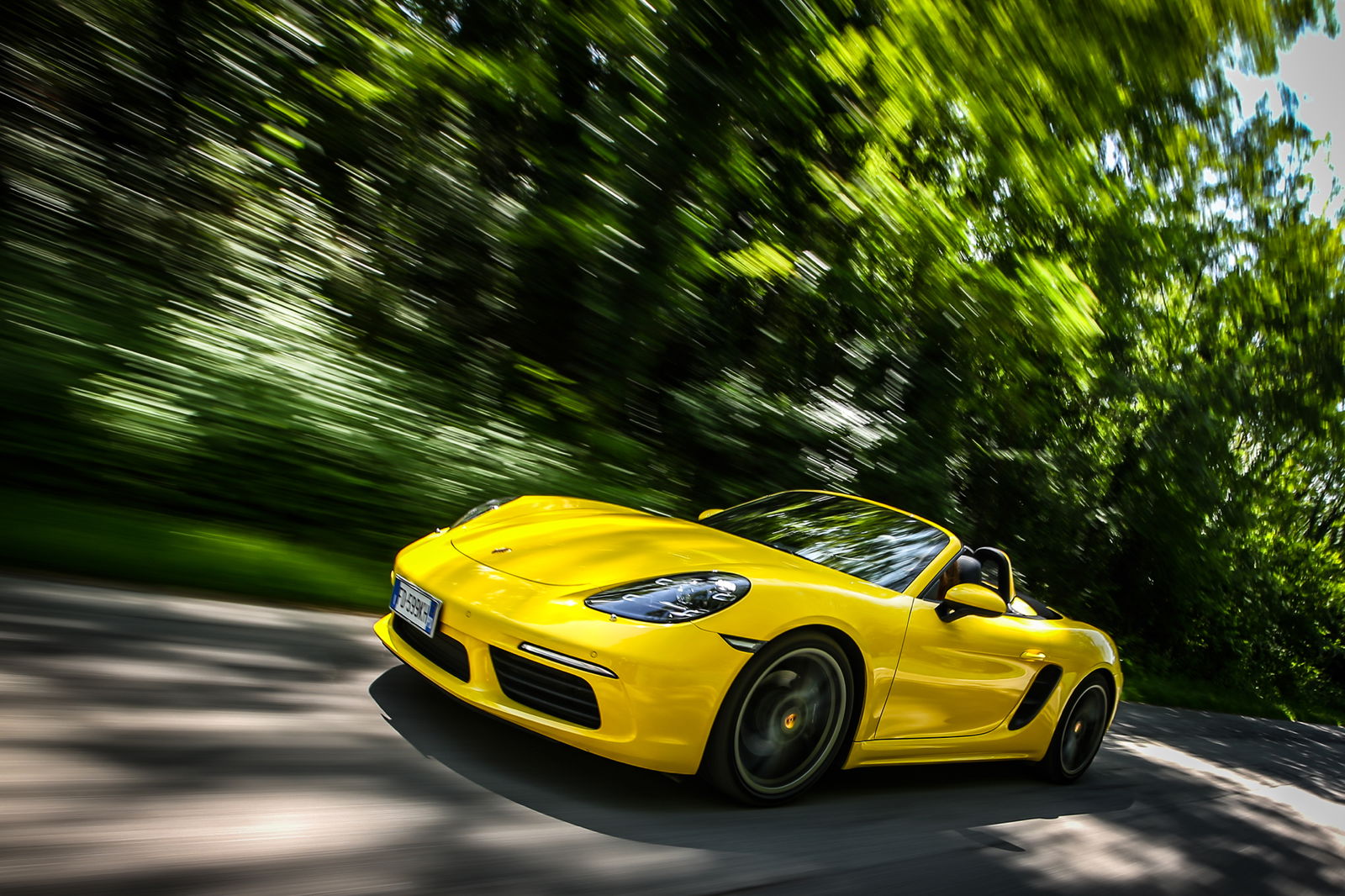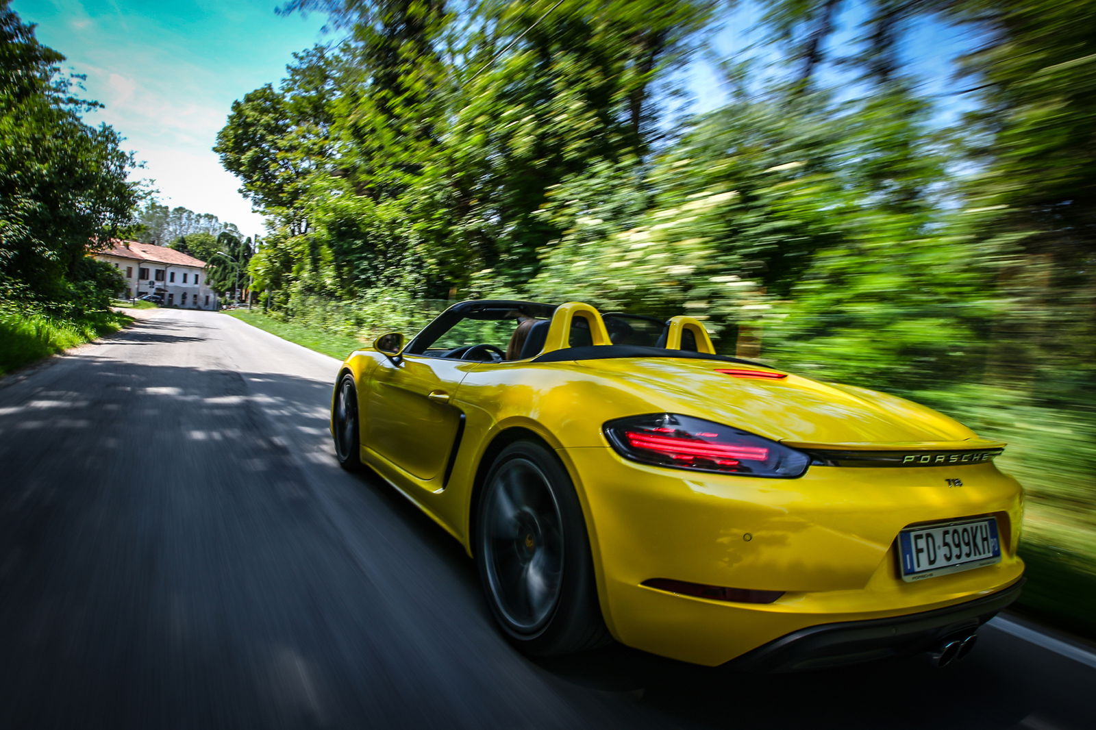 Ma la nuova Boxster non è solo un nuovo motore, il design, inedito per questo modello è decisamente più moderno e aggressivo, le prese d’aria anteriori sono più generose, i fari bixeno rendono giustizia al muso, ma è nella vista laterale e in quella posteriore che secondo me la Boxster dà il suo meglio, con le due grandi “anse” che portano aria alle bocche laterali per far respirare il Boxer montato centralmente. La coda imponente con lo spoiler retrattile (automaticamente oltre una certa velocità o a comando con un pulsante sul Tunnel centrale) e i due gruppi ottici posteriori uniti da una fascia mi piace davvero molto. Se il vestito cambia, anche il telaio è tutto nuovo, l’assetto diverso, i cerchi posteriori sono più larghi così come la carreggiata e i freni.NUOVA ANCHE DENTROA Zuffenhausen hanno lavorato anche all’interno dell’abitacolo dotando la Boxster del nuovo sistema PCM con schermo da 7 pollici, impianto Hi-Fi da 110 Watt e vivavoce Bluetooth, anche lui ereditato dalla 911 e di serie, ma incredibilmente con il navigatore offerto in optional a 1.586 euro. Come è optional anche il modulo Connect per collegare wireless il cellulare l’antenna esterna e l’Apple Car Play. Tante, forse fin troppe solo le features a pagamento. Ecco perché non è affatto difficile veder lievitare il prezzo dai poco più di 56.000 euro del modello “base” agli 84.000 dell’auto in nostro possesso che aveva addosso quasi tutto ciò che era disponibile per la Boxster.CONTINUA A LEGGERE –> VAI ALLA PROVADRIVEAccensione a sinistra; potresti avere gli occhi chiusi e capire comunque che è una Porsche. Ma anche la posizione di guida rende riconoscibile la Boxster come Porsche, accucciata e bassa con una ergonomia di guida perfetta, e tutto al posto giusto.Accensione. Il “Flat-Four” fa sentire la sua voce attraverso lo scarico sportivo, abituato al sound del sei cilindri all’inizio resto un po’ stranito. Curioso che una Porsche suoni così. Tuttavia il lavoro fatto dai tecnici del suono è stato ottimo. Solo ai bassi regimi si percepisce un sound simile a quello di una Subaru Impreza Sti (e io lo considero un complimento) poi ai medi e alti il Boxer Porsche mette insieme una sinfonia di note e di scoppiettii in rilascio (nella mappatura Sport) davvero coinvolgenti.#SEMPREAPERTALa capote esiste, ma la Boxster a mio parere va guidata rigorosamente sempre aperta. A tetto chiuso l’abitacolo è angusto (ovviamente) ma una volta aperto il tetto (operazione velocissima) si gode appieno della spider tedesca ottimamente isolata dal vento della corsa (ma non dal rumore del motore, cosa che a qualcuno potrebbe anche piacere) anche ad alta velocità.MOTORE CON BRIO