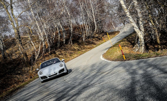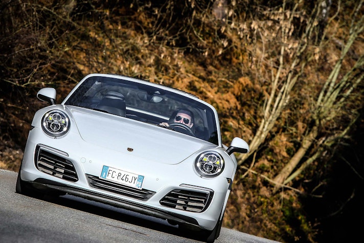 Per 10 giorni ho convissuto con la 911 Targa, godendomela su vari percorsi, da quelli più banali del casa-ufficio o casa-scuola (per la gioia dei figli), alle strade di montagna (praticamente isolate) dove dar sfogo ai 370 cv del suo flat-six biturbo. Non mi sono fatto mancare nemmeno qualche trasferimento autostradale impegnativo, in cui ho usato la zona dei sedili posteriori (oltre al baule anteriore) come bagagliaio aggiuntivo per caricare un paio di borsoni. Ti avvicini, le porte non si sbloccano da sole: devi premere il pulsante sul telecomando. Per avviarla non c’è il tasto “Start” ma bisogna girare la chiave (sulla sinistra). Non dispone di lane assist, insomma la 911 non è l’auto più evoluta dal punto di vista dei “gadget” ma una volta che la guidi (perché lei va guidata non fa tutto da sola) di tutto questo non importa più nulla.CAMALEONTICAPer essere una supercar la Targa è incredibilmente versatile, addirittura camaleontica. Se usata in modo tranquillo, sfruttando le sue qualità di passista (compreso il veleggio), non si fatica a fare meglio di 9 litri per 100 km, consumo in linea con berline dalle velleità molto meno sportive. Ed è comoda, silenziosa (anche il tetto in tela è ben isolato), oltre a non essere mai fuori luogo anche in situazioni in cui un rumore di troppo potrebbe essere sgradito. La sua seconda anima, quella delle mappature Sport e Sport + che alzano il regime di rotazione, aumentano la sensibilità dell’acceleratore, la precisione dello sterzo, la rigidità d’assetto, regala momenti di pura sportività, con un sound che tiene alto l’onore del marchio sul cofano e lussuriosi gorgheggi in rilascio, capaci di solleticare l’animo sensibile del guidatore.QUATTRO CHE INCOLLANO