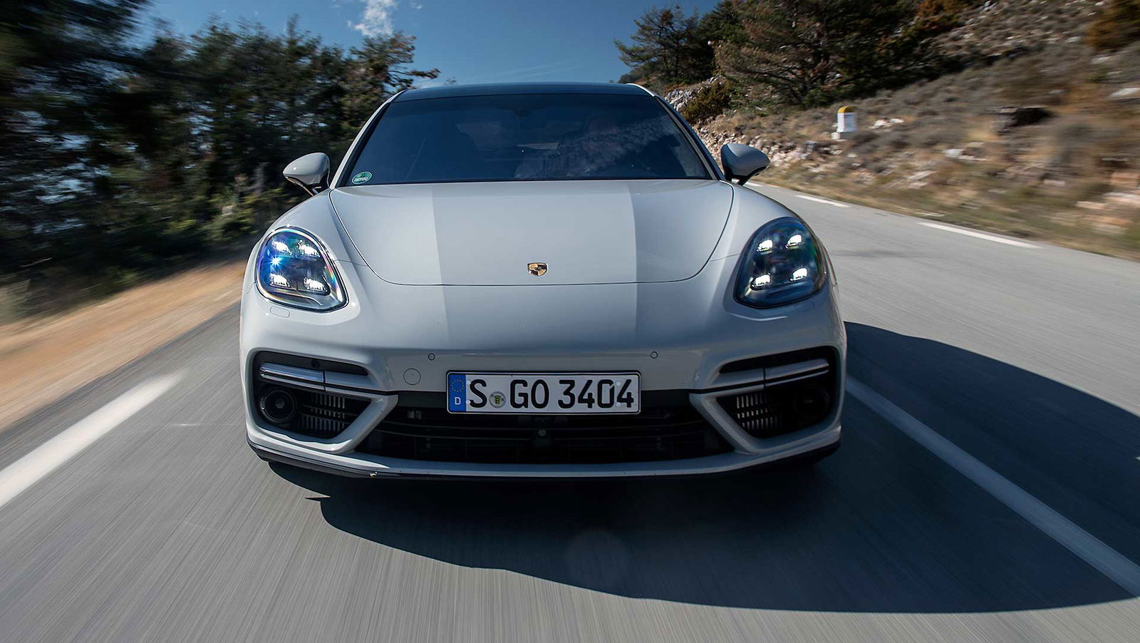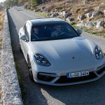Tutto è in comune con la Panamera, le ruote sterzanti sono di serie. Il motore scelto per questa prova è il V8 Turbo da 550 cv e 70 Nm di coppia che riesce ad essere sornione o burrascoso come e quando voi lo preferite. Lunga come un furgone, la Panamera Sport Turismo riesce a sorprendere dopo le prime tre curve. La guida è precisa, dietro al driver ci sono tanti metri che… spariscono come se l’auto una volta in movimento terminasse prima dei sedili posteriori. Magia delle ruote sterzanti che, provare per credere, riescono ad “accorciare” virtualmente l’interasse a livelli di una coupè 2+2. Così sulle curve che salgono al Col de Vence è un attimo farsi prendere la mano. Mappatura Sport+ (attivata con il classico manettino sul volante) e la Panamera Sport Turismo vola tra le curve, facile dimenticarsi dei posti posteriori, solo che magari nel vostro caso saranno “abitati” per cui ricordatevi di avere dei passeggeri prima di scendere in prova speciale. Gasante.O LISCIAPoi arrivi sul lungomare di Nizza riesce ad essere comoda come una limousine, silenziosa, “assorbente” lussuosa. Le tante facce di Panamera trovano ancora più senso in questa Sport Turismo, più comoda da caricare e scaricare, più ampia da riempire di bagagli, sempre ugualmente, inevitabilmente, sportiva ed efficace quando si tratta di guidare davvero. Ed è in questo che la Porsche si distingue dalle concorrenti, riesce ad offrire un livello di comfort del tutto paragonabile alle grandi sedan, con un piacere di guida doppio. Gira svelta, accelera come una pantera, frena come una supersportiva (ma scaldate bene i carboceramici).L’IBRIDA DA SOGNO