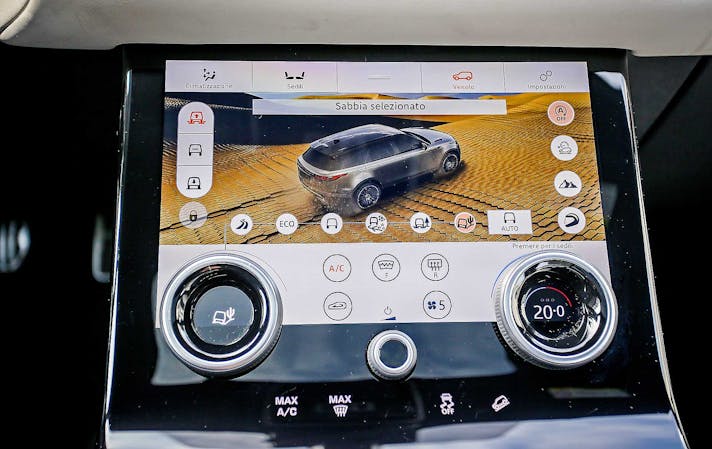 LIVE  Guardandola parcheggiata fuori dalla redazione, con i suoi cerchi ipertrofici e le sue forme tondeggianti e davvero non si direbbe. Eppure la Velar non è la Range più grossa se parliamo di dimensioni esterne. 5 cm in meno rispetto alla Range Rover Sport la piazzano in mezzo alla gamma Range, tra la più compatta Evoque e la ancor più ipertrofica Range. Insomma la Velar è la Range che mancava, “l’anello di congiunzione” l’elemento in più che completa la gamma delle SUV inglesi. Un’auto che introduce un nuovo approccio, definito dalla Casa inglese “minimalista” (anche se guardando l’opulenza degli interni non si direbbe), al design e alcune innovazioni tecnologiche destinate in futuro a essere estese anche al resto della gamma.Cx da record, per una Range RoverTra le novità spiccano i gruppi ottici Matrix LED, dal taglio affilato e in grado di regolare autonomamente il fascio luminoso in funzione della visibilità e della presenza di altre auto, così come le maniglie a scomparsa, che concorrono a ottenere un coefficiente di resistenza aerodinamica molto ridotto (Cx di 0,32): il migliore mai fatto registrare da una Range Rover. Lunga 4,8 metri, vale a dire i già citati 5 cm in meno rispetto alla Range Rover Sport, la Velar può contare su una capienza del bagagliaio compresa tra 673 e 1.731 litri. In abitacolo spicca il sistema Touch Pro Duo con doppio touchscreen da 10 pollici per la gestione delle principali funzioni dell’auto. Il display superiore, nel dettaglio, è inclinabile di 30° e controlla tanto la navigazione quanto la parte multimediale, mentre quello inferiore integra la climatizzazione e la gestione del Terrain Response. Una novità assoluta.Ma quanti ne hai? (di pannelli)L’infotainment della Range Rover Velar prevede la connessione 4G e applicazioni dedicate alla navigazione e ai punti d’interesse, al meteo, alle condizioni del traffico, al costo del carburante e alla gestione sia degli appuntamenti sia del veicolo da remoto. Alla strumentazione tradizionale è possibile preferire un display da 12,3 pollici (così sono tre) configurabile a piacimento, mentre sono previste innumerevoli opzioni per quanto concerne ì rivestimenti in pelle e in radica. Alla possibilità di avere i sedili anteriori con 20 regolazioni elettriche e le funzioni massaggio e climatizzazione si accompagna la disponibilità del divanetto riscaldato e reclinabile elettricamente.Pianale in alluminio e 4WDSotto il profilo tecnico, la Range Rover Velar si avvale della piattaforma modulare IQ in alluminio già utilizzata dalla “cugina” Jaguar F-Pace, cui si accompagnano un passo di 2,87 metri – intermedio tra Evoque e Range Rover Sport – e una gamma motori benzina e Diesel con potenze da 180 a 380 cv. Nel dettaglio, ai quadricilindrici della famiglia Ingenium 2.0 tD nelle configurazioni TD4 da 180 cv oppure SD4 biturbo da 240 cv si affiancano i benzina V6 3.0 Supercharged – con compressore volumetrico – da 300 o 380 cv e 4 cilindri 2.0 turbo da 250 cv. Quest’ultimo in futuro disponibile anche nello step da 300 cv. Top di gamma, lato gasolio, il 3.0 SDV6 da 300 cv della nostra prova. Tutti i propulsori lavorano in abbinamento a un cambio automatico ZF a 8 rapporti con convertitore di coppia. Di serie, per tutte le versioni, le sospensioni adattive, mentre le molle pneumatiche sono riservate alle varianti a 6 cilindri.Sistema Terrain Response 2È una vera Range? Si perché anche se non ha le ridotte, sa affrontare l’off road come a una vera Range viene richiesto. Alla trazione integrale permanente, alla profondità massima di guado di 65 cm e all’altezza minima da terra di 25,1 cm (con sospensioni pneumatiche) si accompagna, infatti, il sistema Terrain Response 2 che consente di adattare alle caratteristiche del terreno l’erogazione del propulsore, la soglia d’intervento del controllo di stabilità e trazione, la gestione della trasmissione, l’assetto della vettura e la percentuale di bloccaggio dei differenziali. Funzioni attivabili scegliendo tra sei diversi programmi di marcia o, più semplicemente, delegando all’elettronica ogni decisione. Vengono armonizzati in funzione del setup selezionato anche l’ABS l’hill descent control (il limitatore della velocità in discesa), mentre il sistema All-Terrain Progress Control mantiene automaticamente una velocità compresa tra 2 e 30 km/h, così che il guidatore possa concentrarsi esclusivamente sulla gestione dello sterzo.  DRIVE  Lusso, interni “pannosi”, silenzio assoluto. La vita a bordo della Velar è degna di quelle SPA dove una volta entrati ci si dimentica di tutti i problemi. Relax è la parola d’ordine, i rumori restano fuori. Sarà anche la Range di mezzo ma quanto a spazio di bordo la Velar non fa rimpiangere le sorelle maggiori. È più slanciata di una Range Classic, una vera crossover, un mix tra stilemi SUV e linee da Station Wagon che tuttavia non limitano se non in piccola parte volumetria e abitabilità. E alla voce comfort, mettiamo anche l’activity key, un bracciale da indossare durante qualsiasi attività sportiva. Ve la tenete addosso e non avrete più problemi con il trasponder perché questo braccialetto apre e chiude l’auto appoggiandolo sul logo Land Rover applicato al portellone, a patto che le chiavi siano state lasciate a bordo dal proprietario. È la prima volta che lasciare le chiavi a bordo di un’auto è addirittura vantaggioso…Sappiamo tutto di lei?Diciamo la verità, quante volte leggete il manuale uso e manutenzione di un’auto? Con la Velar (ma in generale un po’ con tutte le auto di nuova generazione) sarebbe il caso di farlo, altrimenti rischiate di perdervi qualche funzionalità tra le mille che la SUV Range vi propone, perché considerando i due schermi (quello inferiore tra le altre cose comanda il sistema terrain response), i comandi touch, manopole, menù e sottomenù perdersi qualcosa di quello che può fare è fin troppo facile. In re