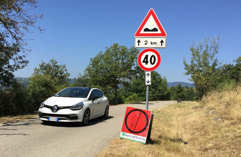 Rispetto alla RS “vulgaris”, l’assetto è ribassato di 20 mm all’avantreno e 10 mm al retrotreno; assale posteriore che beneficia inoltre di molle irrigidite del 40%. Gli affinamenti riguardano anche lo sterzo, reso più diretto, e all’abitacolo, caratterizzato dal Trophy Pack che include i sedili sportivi rivestiti in pelle e le finiture carbon look per le bocchette d’aerazione, la leva del cambio e le maniglie.L’impronta racing si rafforza grazie ai cerchi in lega da 18 pollici abbinati a pneumatici Michelin Pilot Super Sport 205/40-18 e alla disponibilità del sistema di telemetria RS Monitor 2.0 con funzione RS Replay. Dispositivo che consente di creare e scaricare i circuiti, visualizzando mediante una cartina e riutilizzando i dati registrati durante le sessioni in pista. La nuova Clio RS 220 Trophy costa 25.900 euro; vale a dire 2.100 euro in più rispetto alla “base” 1.6 Turbo RS EDC da 200 cv. Con un kit da 72.000 euro la RS220 Trophy si trasforma nella R3T da 240 cavalli che corre con successo nei campionati nazionali Rally.DRIVEBibbiena. Ai più il nome di questo borgo nel mezzo dell’appennino toscano non dirà granché. Per chi corre nei rally, Bibbiena significa invece Rally del Casentino, tappa del campionato nazionale IRC in cui si cimentano oltre a svariate WRC anche le Clio R3T.È su queste strade che Renault ha deciso di farci provare la Clio RS220 Trophy, una vera prova speciale su strada chiusa al traffico con una chicca in più che ha rappresentato la vera ciliegina sulla torta. Tra i personaggi presenti all’evento c’è anche Josep Ferrer, coordinatore Rally di Renault Sport. Spagnolo, un palmares piuttosto importante come navigatore, avendo vinto più volte il titolo spagnolo prima di dedicarsi ai rally africani. Prima che inizino le prove, Josep si arma di penna e bloc notes e parte per la ricognizione del percorso. Torna con tre pagine scritte. Sono le “note”, le indicazioni che nei rally il navigatore dà al pilota.