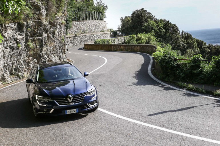 Basata sulla piattaforma modulare CMF, condivisa con la crossover Espace e la SUV Kadjar, Talisman Sporter ha un asso nella manica, rappresentato dalla sterzatura integrale abbinata alle sospensioni adattive. Un pacchetto tecnico optional a 1.750 euro per l’allestimento Intens (inclusi i cerchi in lega da 18 pollici) e di serie per la top di gamma Initiale Paris, che porta in dote un’insospettabile agilità nel misto stretto e una notevole stabilità in velocità. Sino a 60 km/h (80 km/h viaggiando in modalità Sport), le ruote posteriori sterzano – per un massimo di 3,5° – in senso opposto alle anteriori, mentre ad andature superiori agiscono in fase con l’avantreno. Una raffinatezza tecnica, sommata al sistema Multi-Sense che permette di scegliere tra i programmi di marcia Neutro, Sport, Comfort, Personal ed Eco, che dona un carattere velatamente sportiveggiante alla wagon francese. Confortevole in ogni condizione, adottando uno stile di guida brillante Talisman Sporter non teme il sottosterzo o il coricamento laterale, piaghe che invece affliggono gran parte delle concorrenti, oltretutto supportata da uno sterzo abbastanza preciso, sebbene non da riferimento per prontezza.