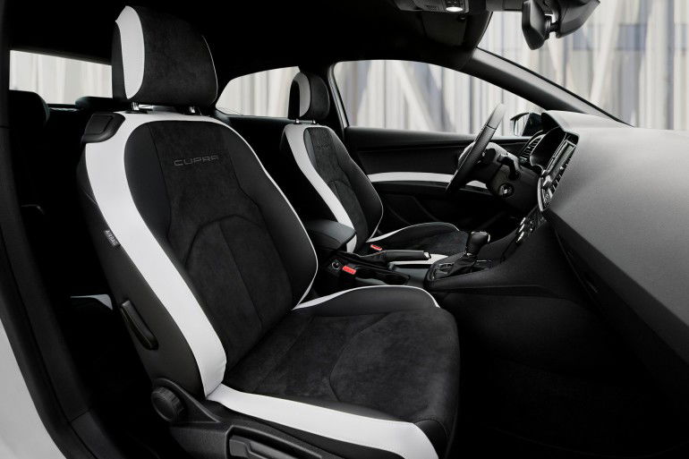 Non nasce per passare inosservata. Le minigonne, l’assetto ribassato, i cerchi in lega da 19 pollici, lo spoiler al tetto, le calotte nere dei retrovisori laterali e i proiettori full LED si fanno immediatamente notare. Così come il sound, una volta selezionato il programma di marcia Cupra o Sport, eruttato dall’impianto di scarico sportivo a doppia uscita ovale, rivisto rispetto al passato nell’ottica del contenimento dei pesi e della riduzione dei valori di retropressione. Meno appariscenti gli interni, dato che in abitacolo spiccano soprattutto il volante dalla corona appiattita nella parte inferiore e i sedili avvolgenti rivestiti in Alcantara, caratterizzati da un buon contenimento e dalla regolazione progressiva, anziché la meno precisa soluzione e scatti, dello schienale.