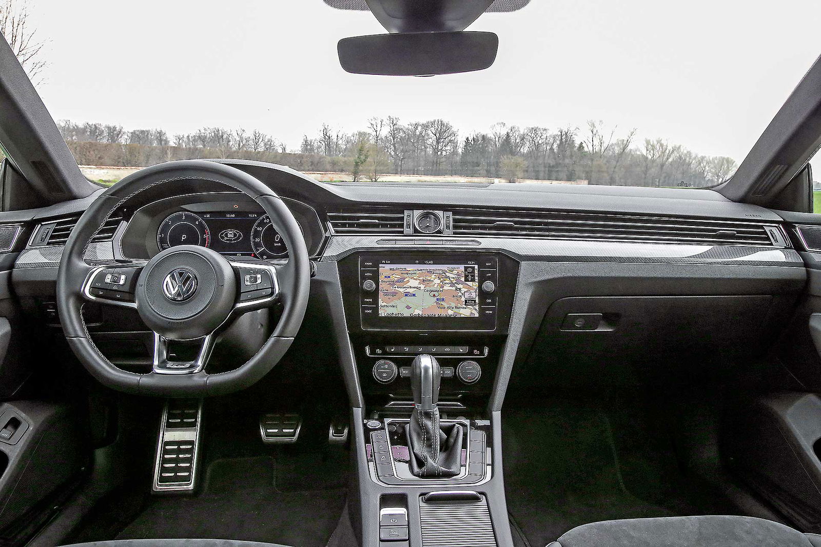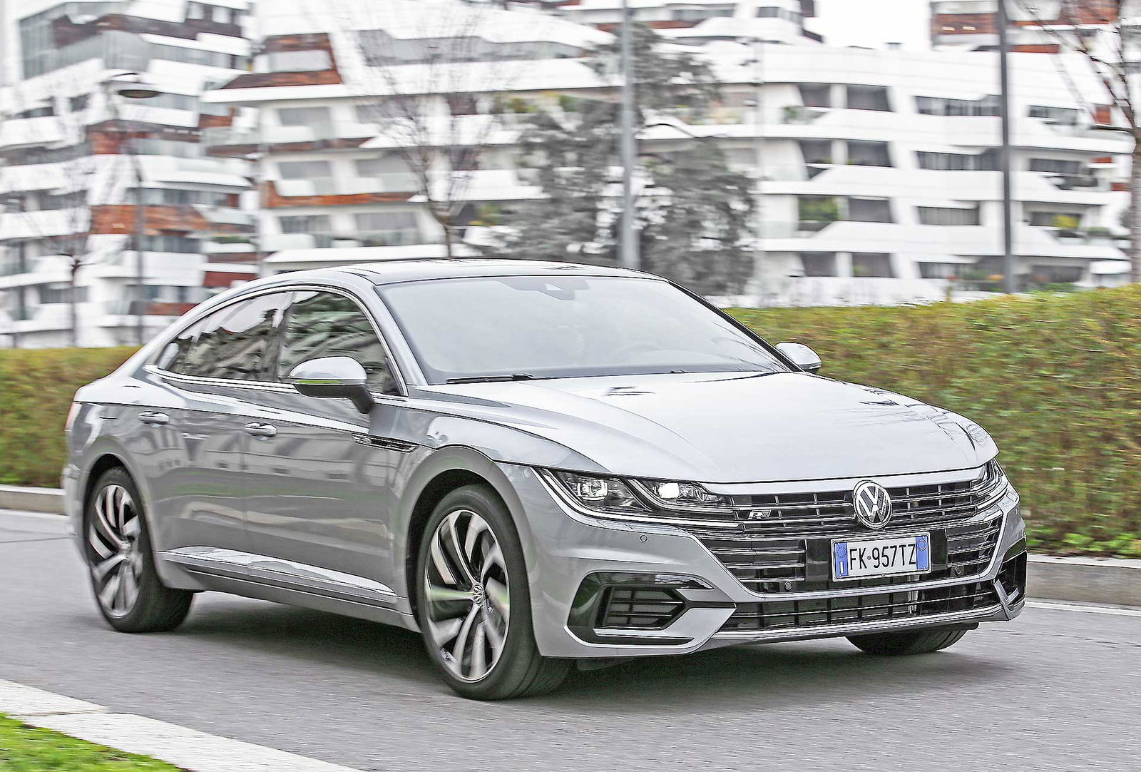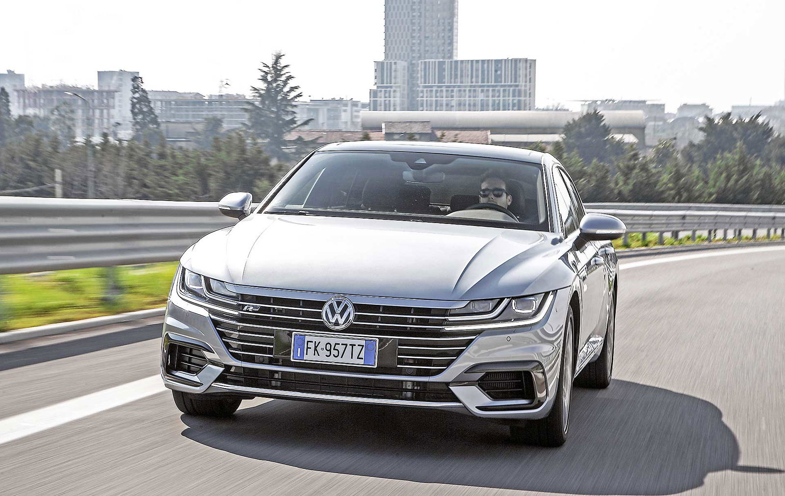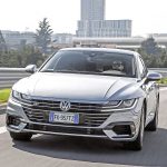 Da station wagon è invece il bagagliaio: la sua capacità va dai 563 ai 1.557 litri e ha come unico neo lo scalino tra la soglia e il piano di carico. È anche merito suo se l’Arteon ha strappato consensi unanimi in redazione, dimostrando una poliedricità sorprendente. La versatilità può tra l’altro essere esaltata con l’Adaptive Chassis Control – DCC, l’assetto adattivo regolabile tramite il Driving Profile Selection. Selezionando una modalità di guida piuttosto che un’altra, la Arteon si trasforma in un amen da una comoda passita in una mangiatrice di curve. Neanche a dirlo, il suo habitat naturale sono le corsie di sorpasso delle autostrade, che percorre silenziosamente e senza avanzare troppe pretese a livello di gasolio, carburante utilizzato dall’intera gamma a catalogo. Fuori dai caselli si apprezza invece soprattutto l’assetto neutro, che rende gustosa la guida sportiva e sicura ogni manovra d’emergenza. Neppure in città la Arteon sembra un pesce fuor d’acqua: negli spazi stretti sfodera un diametro di sterzata ragionevole e fa diventare tutti campioni di Tetris in manovra con gli eventuali sensori di parcheggio.