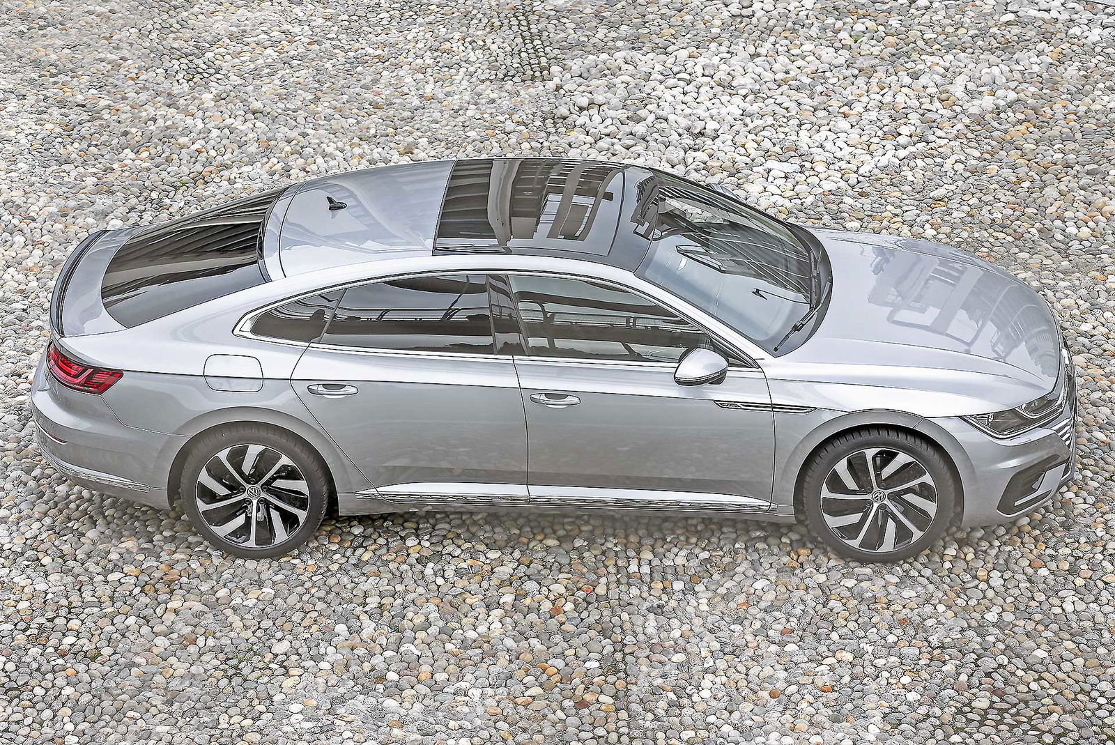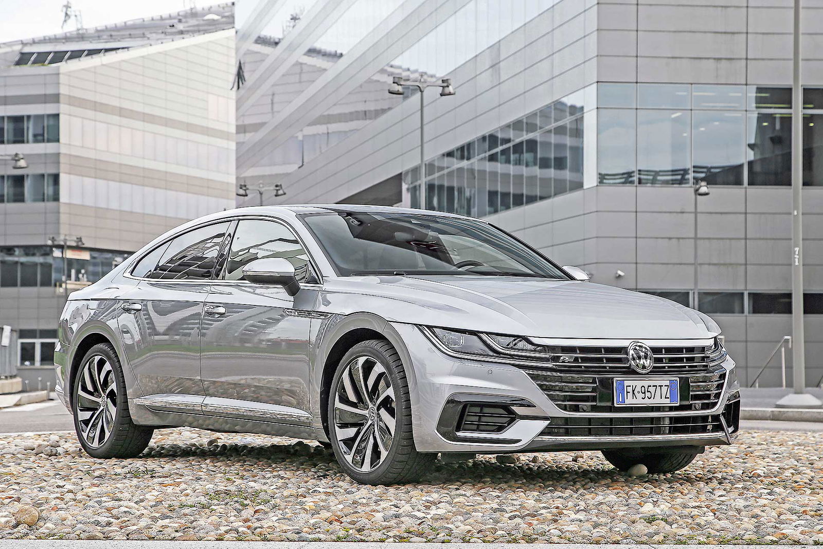 La Arteon intona una voce fuori dal coro e non è facile da inquadrare: non è una berlina e neppure coupé. Secondo i vertici Volkswagen è una Gran Turismo, etichetta impegnativa che la cinque porte tedesca porta comunque con disinvoltura, grazie alle proporzioni indovinate. Le sue misure sono 486 x 187 x 143 cm e definiscono una sagoma molto filante, impreziosita da dettagli raffinati, come i fari full LED e le porte prive di cornice per i finestrini. Ce n’è abbastanza insomma per spiccare con classe in un panorama di tuttoterreno scatoliformi.