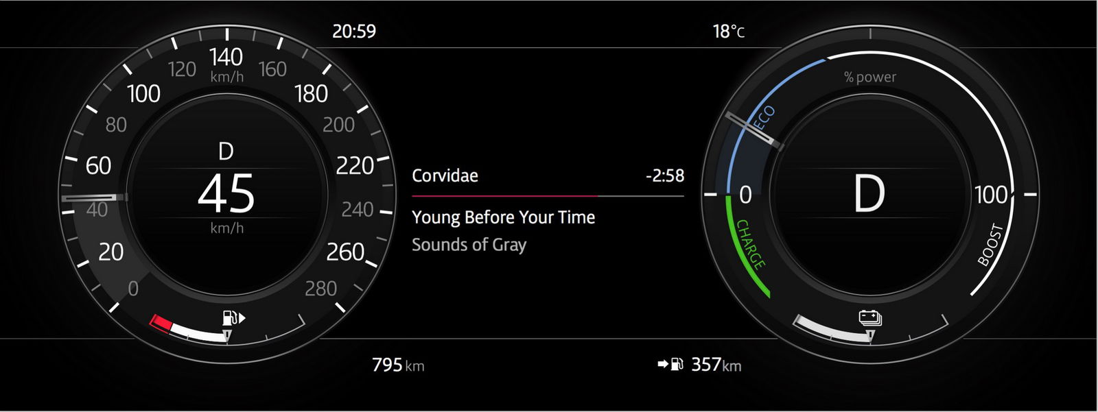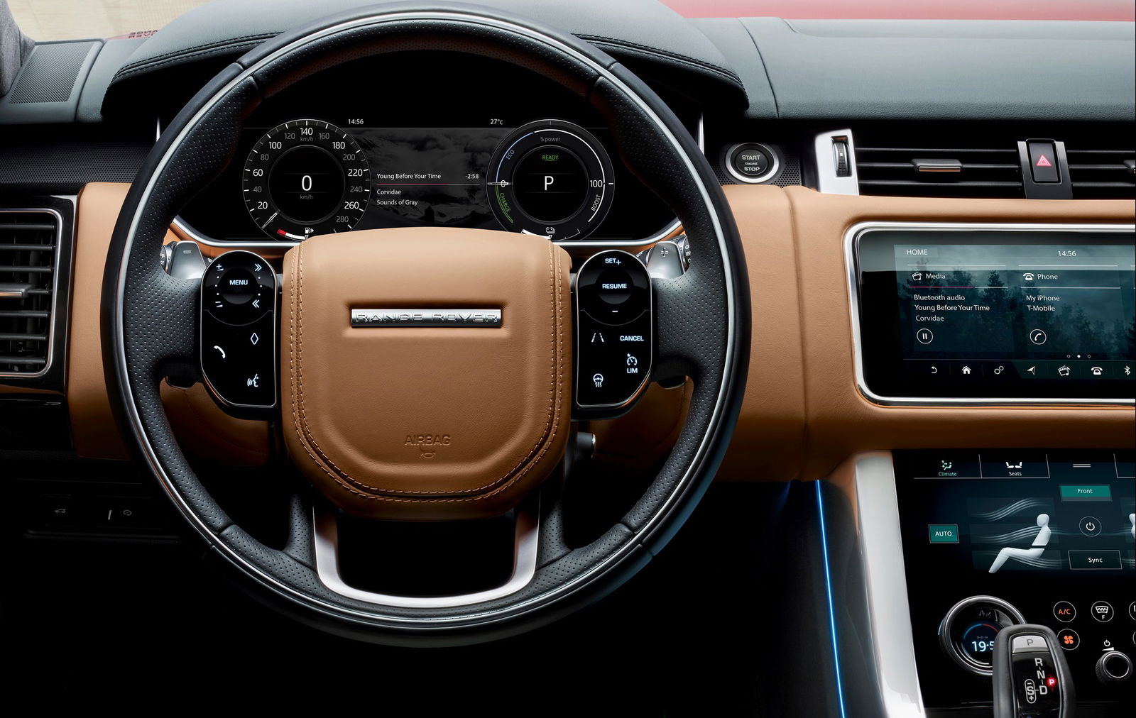 Strumentazione digitaleGuardando al resto della gamma, il facelift introduce alcuni elementi estetici ripresi dalla Velar. Ad esempio i fari Matrix LED, che si accompagnano a una calandra più sottile rispetto al passato, le prese d’aria maggiorate e, al retrotreno, l’inedito paraurti con gli scarichi integrati. Novità più rilevanti in abitacolo, dove spicca il sistema Touch Pro Duo – al debutto anch’esso con la Velar – caratterizzato dal doppio touchscreen da 10 pollici per la gestione delle principali funzioni vettura. Il display superiore, nel dettaglio, è inclinabile di 30° e controlla tanto la navigazione quanto la parte multimediale, mentre quello inferiore integra la climatizzazione e la gestione del Terrain Response. Non meno hi-tech il quadro strumenti, forte di uno schermo da 12,3 pollici configurabile a piacimento, così come l’azionamento della tendina del tetto panoramico, affidato ai comandi gestuali.