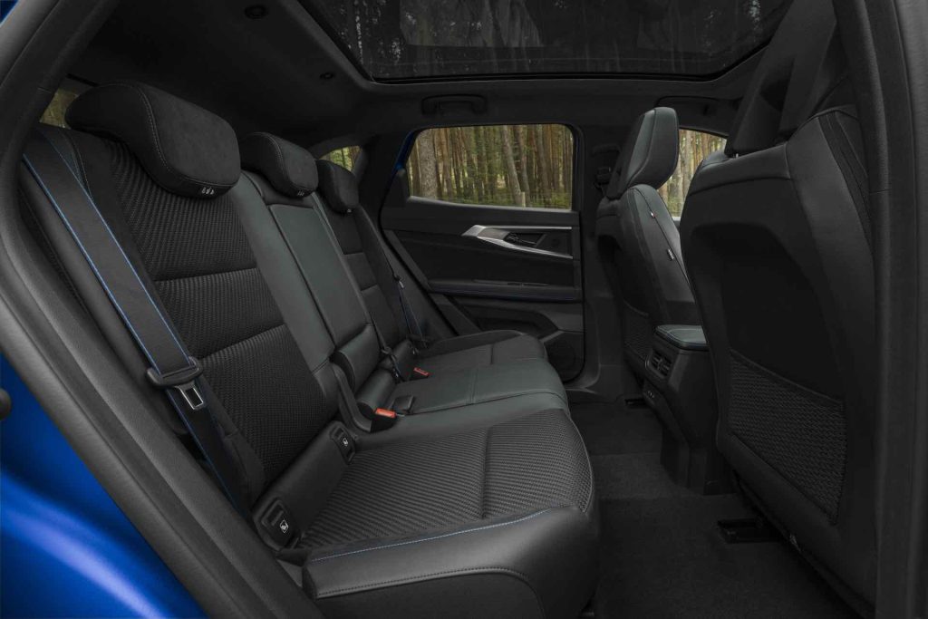 A proposito di capienza, ci sono diversi vani utili per svuotare le tasche: nella parte bassa della plancia due portabicchieri, accanto a due prese USB di tipo C e ad una 12 V. Il tunnel centrale è celato da un elemento scorrevole a forma di cloche di aereo e su cui è posizionata la piastra di ricarica a induzione.