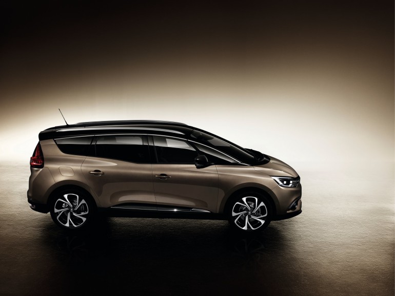 Analogamente alla sorella “corta” Scénic, Grand Scénic – più lunga di 24 cm – s’ispira esteticamente alla crossover Captur, finiture bicolore incluse, e può contare su di una sensibile crescita dimensionale rispetto al passato. Il passo aumenta di 35 mm, la lunghezza complessiva di 75 mm e il vano di carico può contare su di una capienza di 765 litri con cinque persone a bordo contro i 702 litri appannaggio del precedente modello. Sviluppata sulla base della piattaforma modulare CMF, punta sul comfort e, caso più unico che raro nel panorama delle monovolume, adotta di serie cerchi in lega da ben 20 pollici abbinati a pneumatici specifici nella misura 195/55. Una scelta dettata dalla volontà di ridurre al minimo, a detta della Casa, la resistenza al rotolamento.