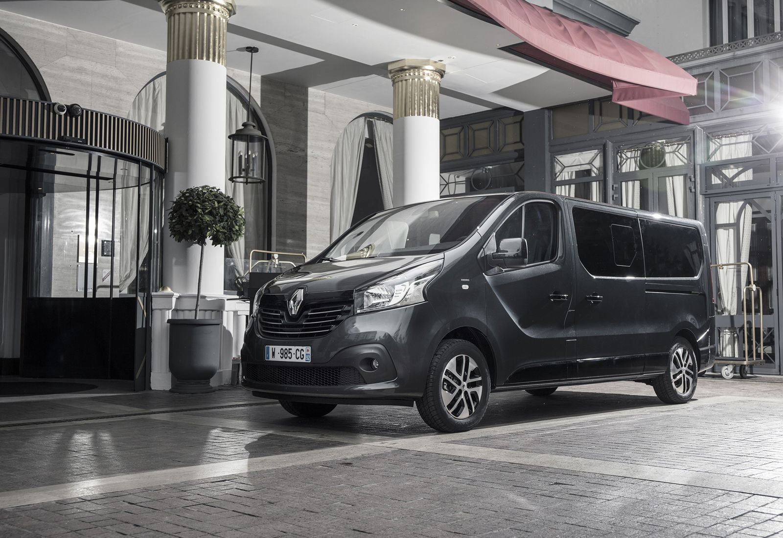 ELEGANZA A 360 GRADI Tra le novità che caratterizzano gli esterni del Trafic ci sono la raffinata tinta Grigio Cometa metallizzata e la firma luminosa a forma di “L”, ma anche cerchi in lega 17” diamantati, disponibili in opzione, e un badge personalizzato SpaceClass. Si aggiungono vetri oscurati e dettagli nero lucido nei retrovisori esterni, maniglie, protezioni laterali inferiori, maniglia del portellone posteriore e nella fascia porta-targa. Nell’abitacolo predomina la colorazione carbonio scuro, che non inficia però la luminosità dell’ambiente. Trafic SpaceClass presenta esclusivi sedili singoli anche per seconda e terza fila e volante in pelle, inserti cromati e nero lucido che si ritrovano anche sul cruscotto e dettagli in alluminio.MOTORIZZAZIONI E VERSIONI DISPONIBILI Sul mercato sono disponibili le motorizzazioni Energy dCi 125 Twin Turbo S&S e Energy dCi 145 Twin Turbo S&S. Due le lunghezze, valide per entrambe le versioni: L1: 4,99 m – L2: 5,39 m e nelle due configurazioni SpaceClass, da 2 a 8 posti, e Signature da 7 posti con salottino. Le ordinazioni partono dal 3 novembre con prezzi a partire da 39.900 euro per la versione L1 1.6 dCi Twin Turbo 125cv S&S E6 (IVA inclusa) fino ad arrivare a 41.700 euro per il 1.6 da 145 CV in configurazione L2.La Casa della Losanga ha annunciato infine l’arrivo, nella prima parte del 2018, della terza variante del veicolo, l’Escapade: potrà ospitare fino a 7 passeggeri e abbattendo i sedili posteriori si trasformerà in un letto per due persone, della lunghezza di 1,90 metri.