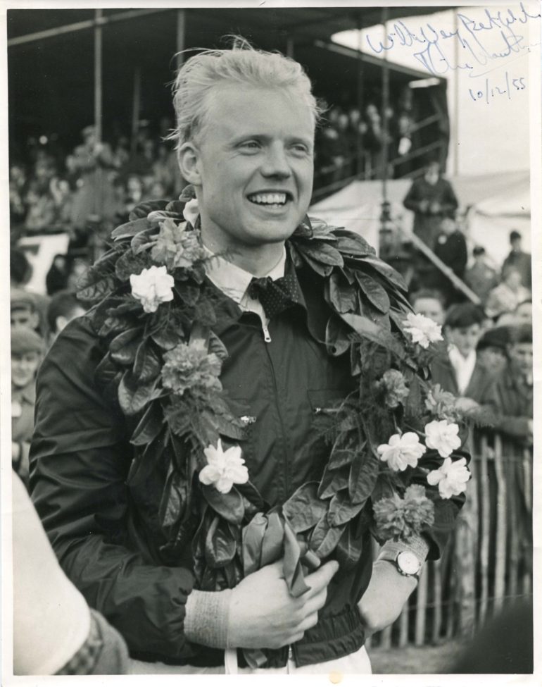 Nel 1958, Hawthorn correva per la Ferrari: era uno dei pretendenti al trono di Juan Manuel Fangio, da quattro anni di fila campione del Mondo ma ormai avanti con gli anni. L’inglese, classe 1929, aveva già dato prova della propria abilità di guida in un infuocato Gran Premio di Francia nel 1953, regolando di strettissima misura con la propria Ferrari 500 le due Maserati di Fangio e Froilan González e il compagno di squadra Alberto Ascari, campione in carica. Pur se di flemma britannica, abituato a controllare le proprie emozioni tanto in pista quanto nella vita, nelle 11 gare sulle quali si articolava il campionato Hawthorn vide morire i compagni di squadra Luigi Musso a Reims e Peter Collins, inglese anch’egli, al Nürburgring. A Indianapolis, quarta gara di stagione (disertata dalle scuderie europee), era toccato allo statunitense Pat O’Connor. Così l’inglese decise di dire basta, tanto più che una sua manovra aveva innescato la carambola di Le Mans dell’11 giugno 1955 – gara peraltro da lui vinta – costata la vita di Pierre Levegh e di qualcosa come 83 spettatori. Per tragica ironia della sorte, Hawthorn avrebbe poi trovato la morte in un incidente stradale a pochi mesi dal ritiro: in un freddo giorno di gennaio 1959, la Jaguar 3.4 da lui condotta sull’autostrada A3 uscì di strada nei pressi di Guildford schiantandosi contro un albero. L’iridato in carica si stava recando a Londra, al Cumberland Hotel, per partecipare a un evento di beneficienza: secondo qualcuno, fin troppo di fretta e – soprattutto – in piena gara con la Mercedes condotta da Rob Walker, discendente dei fondatori della Johnnie Walker, appassionato di motori e per quasi vent’anni titolare dell’omonima scuderia di Formula 1. Va detto che Walker, nel corso della propria vita, ha sempre negato con fermezza questa ipotesi: la fine di Hawthorn rimarrà quindi per sempre ammantata di mistero.
