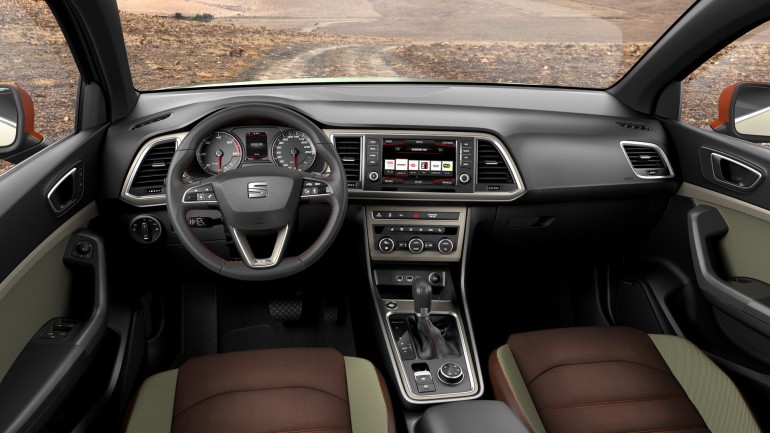 La dotazione off road di Ateca X-Perience si completa con la limitazione della velocità in discesa e l’assistenza alla partenza in salita, cui si accompagnano slitte antiurto sottoscocca, cerchi in lega da 18 pollici abbinati a pneumatici dalla spalla maggiorata e protezioni in plastica a contrasto lungo paraurti, archi passaruota e minigonne. Degni di nota la tinta verde oliva antigraffio con inserti arancio, estesi alle pinze dei freni, e l’abitacolo corredato dell’illuminazione ambientale a LED, di cuciture a contrasto per i sedili in pelle e di tappetini in gomma a protezione della moquette. Quanto al reparto sicurezza, la SUV spagnola si avvale di tutte le più moderne tecnologie – a partire dal cruise control adattivo e dalla frenata automatica d’emergenza – cui si affiancano la connettività Full Link integrante i protocolli Apple CarPlay e Android Auto nonché la ricarica induttiva per gli smartphone.