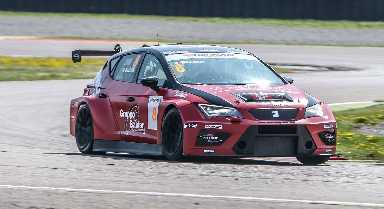 La CUP Racer mi proietta nell’olimpo dei piloti veri. Qui si fa davvero sul serio: 330 cavalli, differenziale autobloccante regolabile così come il ripartitore di frenata che rendono la Leon una vera purosangue. Impressionante se si pensa che la parentela con la CUPRA di serie è strettissima a partire dal cambio, lo stesso che utilizziamo sull’auto stradale. Con la Cup Racer è un’altra storia, è rabbiosa, veloce, efficacissima ma anche più tecnica da guidare. Un “giocattolo” che fa sentire veri piloti e che ti invita a portare il limite un po’ più avanti, a frenare sempre qualche metro più in la pestando con il piede sinistro (altrimenti disimpegnato visto che anche in questo caso la frizione non c’è) con tutta la forza che hai sul pedale (perché il servofreno qui non c’è, come sulle vere racer).LEON TCRGiro dopo giro prendo il ritmo, e capisco che con la Leon il limite è incredibilmente alto. Il mix tra aerodinamica (che su questa auto inizia ad avere parecchia importanza) e bilanciamento dei pesi è incredibilmente azzeccato, sono gasato. Quando scendo ho in corpo un misto di eccitazione e adrenalina. Che si innalzano ancora quando salgo sulla vettura di Baldan con il cambio sequenziale. Qui la frizione c’è, ma la usi solo per partire, la guida è ancor più “analogica” non c’è più chi fa le cose per te ma decidi tu quando cambiare, quando scalare e se sbagli… triti le bielle.