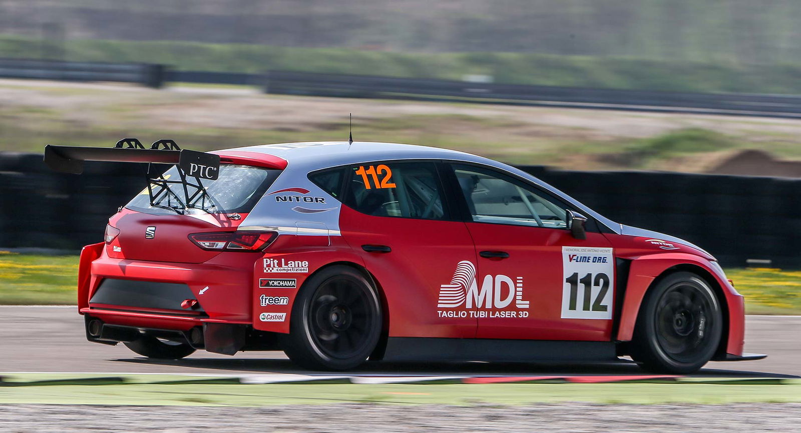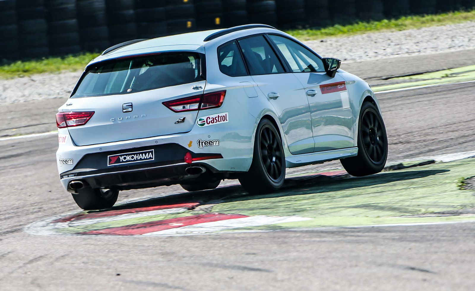 Sono carico. A parte le necessarie modifiche per correre quasi tutti i componenti quelli dell’auto di serie. Di solito il problema principale con auto e moto da corsa è… partire. Hanno frizioni ostiche e rapporti lunghi per cui spesso è più facile spegnerle che muoversi. Con Leon ST non accade niente di tutto questo perché il cambio è il DSG di serie, non c’è nemmeno la frizione, per cui basta accelerare e ci si muove come al semaforo in città.SALTO PRESTAZIONALEPoi però capisco che il salto prestazionale è importante: più cavalli e meno peso significano più cattiveria, le accelerazioni aiutate dal cambio DSG si fanno più perentorie l’agilità raddoppia il rollio sparisce e…. si va forte! L’assetto non è estremo, la ST è lunga e si “muove” un po’ ma la sorpresa è scoprire come l’auto in cui normalmente caricheresti il passeggino di tuo figlio può essere così performante in pista. Aiutato dal differenziale autobloccante (di serie) il muso chiude bene la linea a patto di scaldare bene le slick. Trovo un’auto divertentissima che ti aiuta molto perché puoi usare il cambio solo in scalata (in salita puoi lasciar fare al DSG che inserisce la marcia sempre al regime corretto) e che mostra doti pistaiole sorprendenti. Bella, e anche non così costosa per chi la vuole utilizzare per correre. Come i bambini che iniziano a divertirsi, non vorrei più scendere. Ma lo faccio, perché dopo mi aspetta un giocattolo ancora più bello.