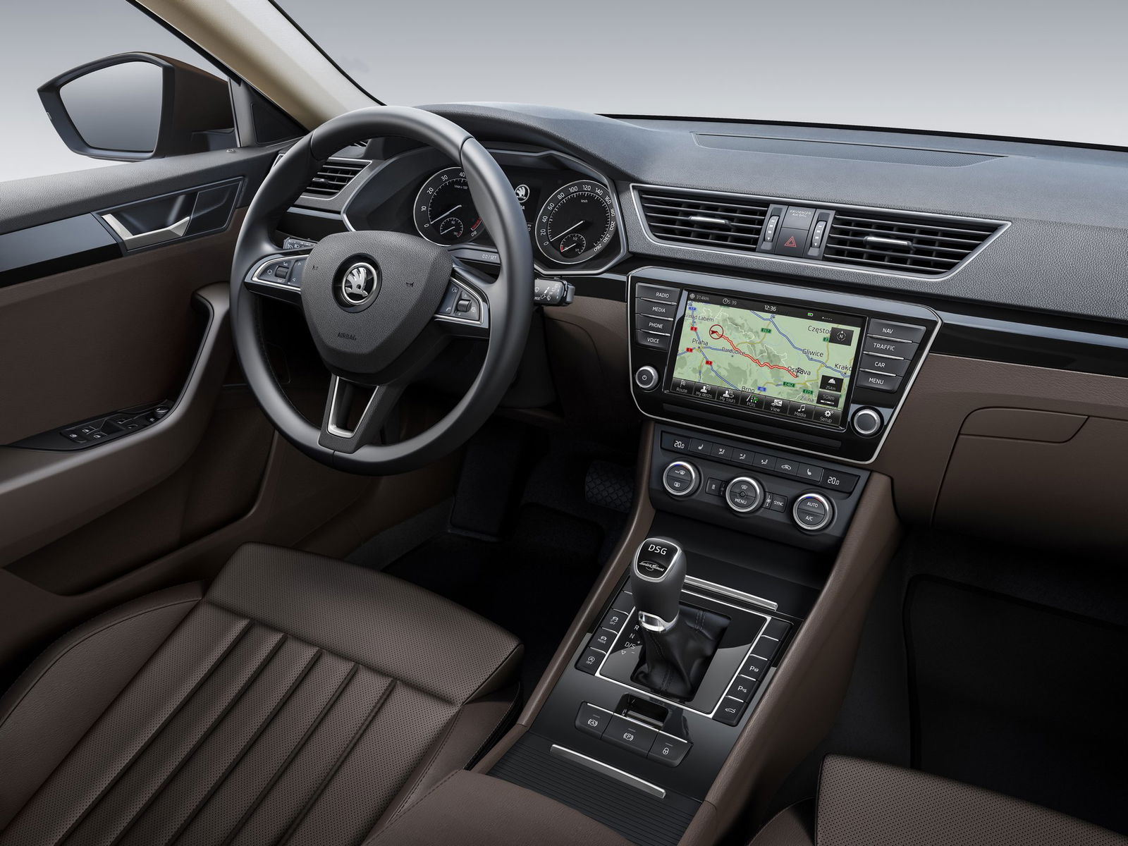 La terza generazione della vettura ceca punta tutto sullo spazio grazie alla crescita di 28 mm in lunghezza, 47 mm in larghezza e 80 mm nell’interasse, a tutto vantaggio dell’abitabilità posteriore e della capacità del bagagliaio – passata da 595 a 625 litri –, ma al tempo stesso porta in dote un “dimagrimento” di 80 kg rispetto al passato. La leggerezza, del resto, è favorita dall’adozione del pianale modulare MQB del Gruppo Volkswagen; il medesimo della “cugina” Passat. Grazie alla linea più slanciata, all’aerodinamica maggiormente curata e ai motori omologati Euro 6, la nuova Superb promette una riduzione dei consumi nell’ordine del 30% qualora paragonata al vecchio modello.