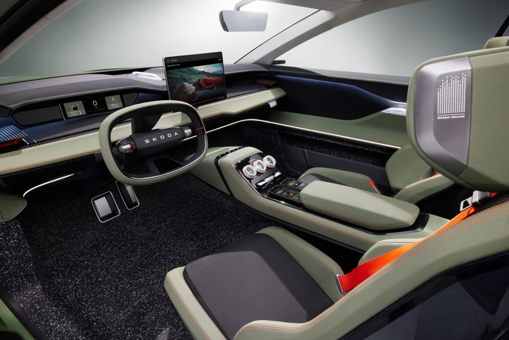 A far capire che il momento è cruciale c’è anche il nuovo logo. Anzi, per essere più precisi il logo scompare e il suo posto viene preso dalla scritta Skoda per esteso, con un carattere inedito per il marchio, più moderno e pulito. E se dentro di voi sta nascendo il sospetto che si tratti della solita operazione di facciata, forse l’investimento di 5,6 miliardi di euro per la mobilità elettrica e i 700 milioni per la digitalizzazione nell’arco dei prossimi cinque anni vi convince del contrario. Ma torniamo alla Vision 7S, mostrata in anteprima a Praga. La base è ovviamente la piattaforma MEB del Gruppo Volkswagen, la stessa della Enyaq ma qui con batterie più grandi (89 kWh), capaci di garantire fino a 600 km di autonomia e di accettare una potenza di ricarica di picco di 200 kW.