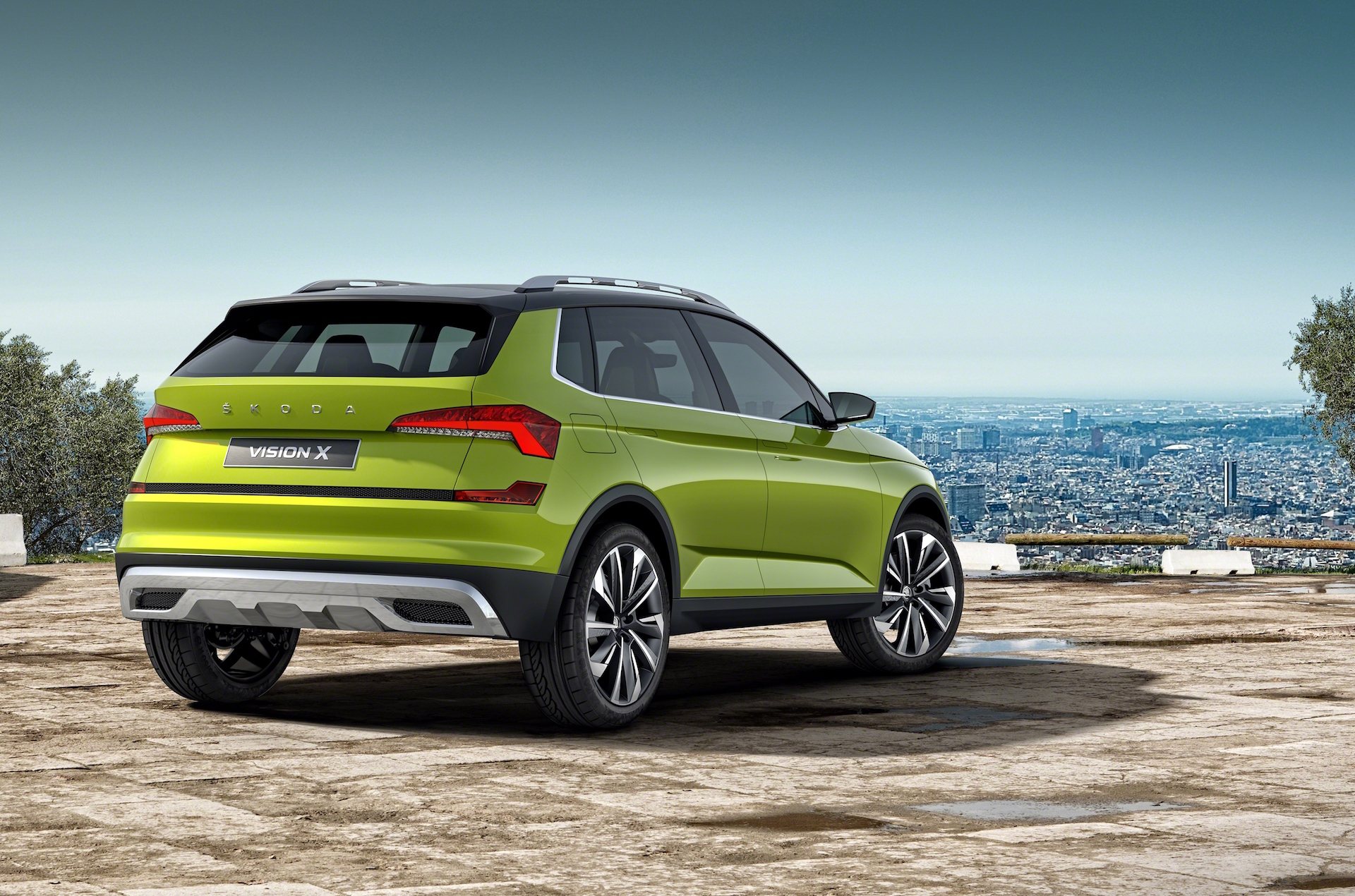 Look fresco e vivaceL’abito della Skoda Vision X, qui nel tradizionale verde della Casa, è un tripudio di linee tese e tagli, per un’immagine decisamente dinamica e massiccia. Rafforzata dai cerchi da 20″ e dagli inserti in alluminio che fanno capolino dai paraurti. Il frontale è arcigno, ha fari a LED e porta in dote la classica mascherina Skoda. Per ora conosciamo il passo (265 cm) e il bagagliaio, 380 litri, ma sappiamo anche che lo spazio interno beneficia dell’assenza dell’albero di trasmissione. Anche se la Vision X è a quattro ruote motrici.
