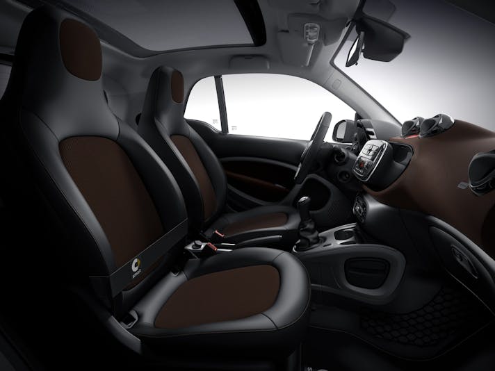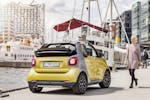 Comandi vocaliSopra il livello Perfect si colloca la versione Prime, ora dotata di serie del pacchetto speciale Brabus. Questi include i cerchi in lega da 16 e 17 pollici in grigio satinato, l’assetto ribassato di 10 mm, le sospensioni sportive, il kit aerodinamico dedicato, il volante multifunzione in pelle, la leva del cambio personalizzata e la pedaliera in acciaio spazzolato. Quanto alla multimedialità, debuttano il riconoscimento vocale dei comandi, in aggiunta alle tecnologie Apple e Android già disponibili in materia, e, limitatamente alle versioni elettriche di fortwo e forfour, le app Smart Control ed Experienc-e. La prima per monitorare da remoto l’autonomia, la carica delle batterie e attivare la pre-climatizzazione, la seconda per stimare la percorrenza residua e scoprire le funzionalità dell’auto.Meccanica immutataNulla cambia sotto il profilo meccanico. Entrambe le city car smart, sviluppate in partnership con la Renault – il pianale è il medesimo della nuova Twingo – confermano un diametro di sterzata estremamente ridotto e i propulsori a benzina collocati posteriormente. Sono disponibili, nello specifico, un 3 cilindri in linea 12V aspirato di 999 cc, forte di 71 Cv, e un tricilindrico sovralimentato mediante turbocompressore di 898 cc, accreditato di 90 Cv o, limitatamente alla Brabus, di 109 Cv. La variante elettrica può contare su 82 Cv e circa 160 km d’autonomia. Trasmissioni manuale a 5 marce o automatica a doppia frizione a 6 rapporti; assente nel caso delle vetture a batteria.