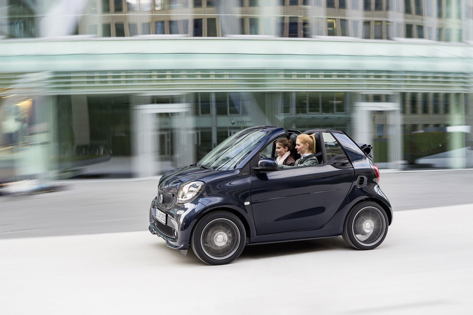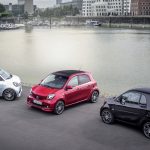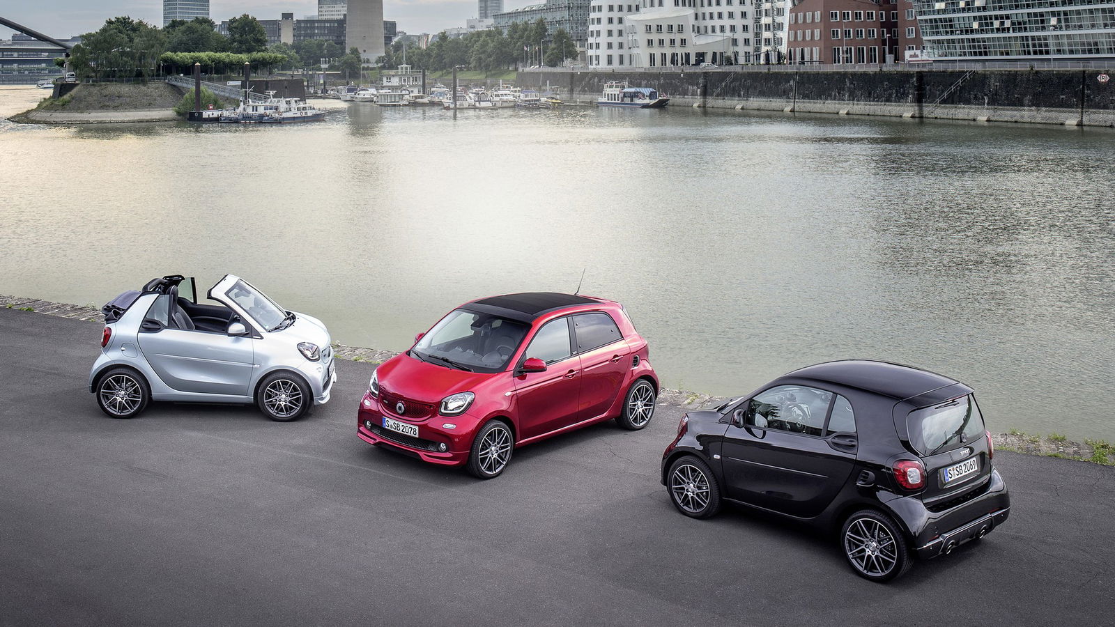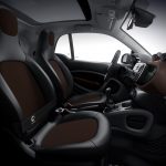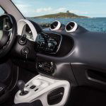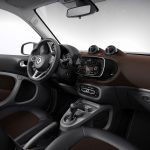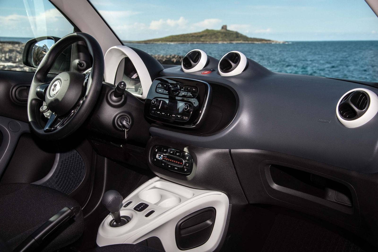Comandi vocaliSopra il livello Perfect si colloca la versione Prime, ora dotata di serie del pacchetto speciale Brabus. Questi include i cerchi in lega da 16 e 17 pollici in grigio satinato, l’assetto ribassato di 10 mm, le sospensioni sportive, il kit aerodinamico dedicato, il volante multifunzione in pelle, la leva del cambio personalizzata e la pedaliera in acciaio spazzolato. Quanto alla multimedialità, debuttano il riconoscimento vocale dei comandi, in aggiunta alle tecnologie Apple e Android già disponibili in materia, e, limitatamente alle versioni elettriche di fortwo e forfour, le app Smart Control ed Experienc-e. La prima per monitorare da remoto l’autonomia, la carica delle batterie e attivare la pre-climatizzazione, la seconda per stimare la percorrenza residua e scoprire le funzionalità dell’auto.Meccanica immutataNulla cambia sotto il profilo meccanico. Entrambe le city car smart, sviluppate in partnership con la Renault – il pianale è il medesimo della nuova Twingo – confermano un diametro di sterzata estremamente ridotto e i propulsori a benzina collocati posteriormente. Sono disponibili, nello specifico, un 3 cilindri in linea 12V aspirato di 999 cc, forte di 71 Cv, e un tricilindrico sovralimentato mediante turbocompressore di 898 cc, accreditato di 90 Cv o, limitatamente alla Brabus, di 109 Cv. La variante elettrica può contare su 82 Cv e circa 160 km d’autonomia. Trasmissioni manuale a 5 marce o automatica a doppia frizione a 6 rapporti; assente nel caso delle vetture a batteria.