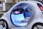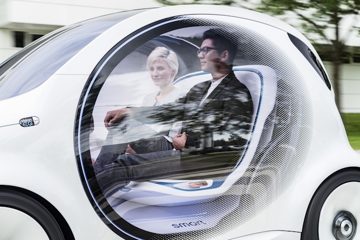 Alternativa al trasporto pubblicoHa tutte le carte in regola per divenire la nuova paladina della strategia EQ. La smart Vision EQ fortwo è infatti una vettura futuristica, nata per il car sharing più estremo, vale a dire totalmente senza conducente. Una “visione” del futuro che, nei programmi della Stella, dovrebbe concretizzarsi entro il 2030 trasformando radicalmente il servizio Car2Go, nell’orbita di Stoccarda, ed evolvendolo in chiave autonoma, così da proporsi come un sistema di trasporto concorrente e alternativo al servizio pubblico. Secondo i programmi smart, la fortwo autonoma si sposterà infatti in una sorta di moto perpetuo da un passeggero all’altro, oppure coprirà automaticamente gli eventi con la maggiore concentrazione di pubblico o, ancora, permetterà la condivisione del viaggio tra più persone, riducendo drasticamente il traffico e la superficie di suolo pubblico occupata dalle vetture nelle fasi di non utilizzo.Display da 24 polliciIl volante e la pedaliera? Superflui. Non meno originale la seduta dei passeggeri, unificata oppure separabile grazie a un semplice bracciolo a scomparsa, mentre la plancia è dominata da un display da 24 pollici (!) in grado, similmente a uno smartphone, di garantire le opzioni per la vita di bordo, l’infotainment e l’attività di car sharing. Caratterizzata da dimensioni pressoché identiche a una comune fortwo ED (Electric Drive), la city car del futuro sarà biposto, non eccederà i 2,69 metri di lunghezza e porterà al debutto una nuova interpretazione della cellula di sicurezza Tridion. Vale a dire l’esoscheletro in acciaio distintivo della produzione smart, destinato a evolvere in una conformazione sferica accompagnata da un tetto panoramico in vetro inclusivo del parabrezza e del lunotto. Una struttura trasparente senza soluzione di continuità, con le porte che si aprono verticalmente ruotando oltre l’assale posteriore.