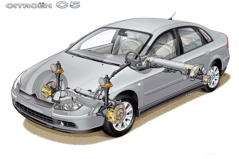 Frutto di una lunga progettazione, le sospensioni oleopneumatiche erano del tipo a ruote indipendenti a quadrilateri e consentivano di mantenere costante l’altezza da terra della vettura. Il sistema si basava su quattro sfere d’acciaio – una per ruota – riempite per metà d’olio e per metà d’azoto; sostanze separate da una membrana. In caso di fondo sconnesso o carichi a bordo, l’olio andava a comprimere l’azoto, adattando automaticamente alle condizioni di marcia tanto la risposta ammortizzante quanto l’assetto della vettura.