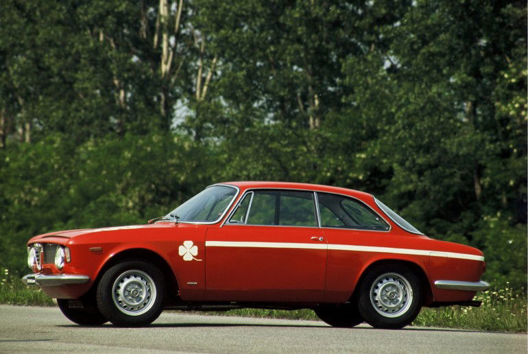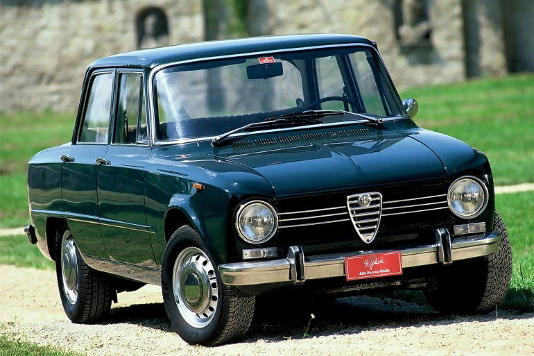 Fu una vettura innovativa sia nell’aerodinamica – uno dei pochissimi modelli di grande serie sviluppato in galleria del vento – sia nelle soluzioni pratiche: adottava infatti cuscinetti delle sospensioni e snodi dello sterzo autolubrificanti, rendendone così superflua la manutenzione. Inizialmente realizzata in versione TI (Turismo Internazionale), venne presto seguita dalla TI Super, destinata alle competizioni e caratterizzata dal famoso simbolo del “Quadrifoglio” tipico delle Alfa Romeo da corsa. Poteva contare sulla carrozzeria alleggerita grazie al ricorso all’alluminio per cofani e portiere, motore da 112 cv con doppio carburatore Weber, cerchi in magnesio e – finalmente – leva del cambio in posizione standard. Modifica, quest’ultima, presto recepita anche dalla “normale” TI. Seguirono versioni più curate negli interni (Super), la 1600 S da 95 cv (102 cv dal 1969), il restyling del 1971 e la Nuova Super del 1974.