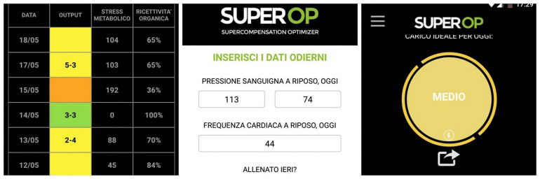 Apprezzato tanto dai professionisti quanto dagli amatori per l’individuazione del carico allenante e il monitoraggio della condizione fisica, SuperOp si avvale di una app su smartphone abbinata a uno sfigmomanometro digitale da polso che, grazie a un complesso algoritmo, valuta i parametri legati allo stress organico-metabolico. Con una semplice misurazione mattutina della pressione sanguigna e del battito cardiaco, SuperOp è in grado di determinare la condizione quotidiana dell’organismo suggerendo il carico appropriato di lavoro così da ottimizzare il processo di supercompensazione – vale a dire l’adattamento migliorativo con cui il fisico risponde allo stress dell’allenamento – alla base dell’affinamento delle performance.