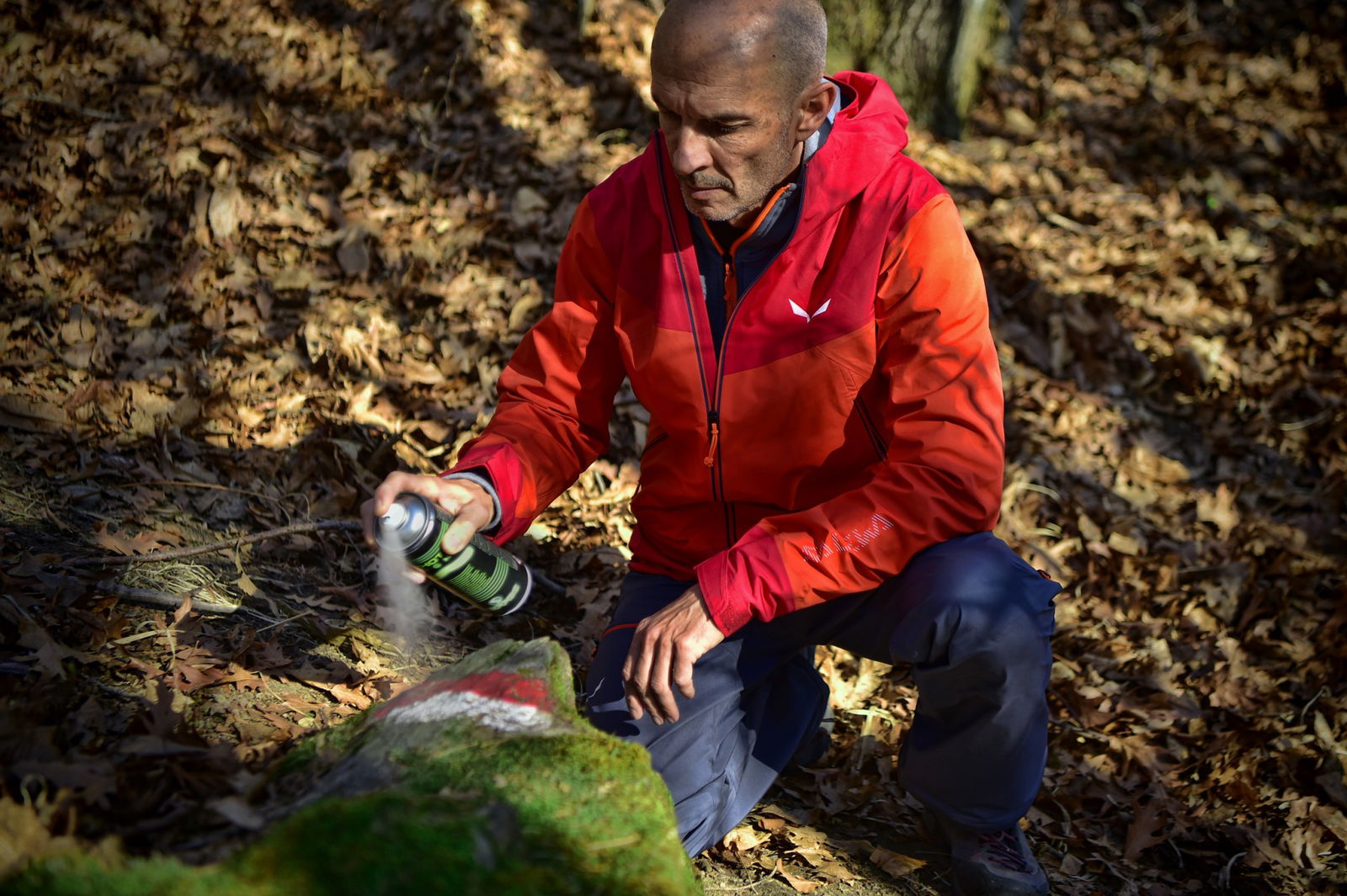 Grazie al permesso di transito che custodivamo gelosamente nella tasca della portiera abbiamo potuto percorrere, senza limitazioni, tutte quelle carrarecce di solito riservate ai mezzi della Protezione Civile, ai tecnici dell’Enel, al gestore di qualche rifugio e ai proprietari delle malghe sparse fra gli alpeggi.Cartina e binocolo alla mano, nastro, cartelli e vernice nello zaino, Marvel fra i piedi. Chilometri di boschi, mulattiere, qualche divagazione sui ripidi e gibbosi pratoni di erba ancora bruciata dalla neve. Fra un giro di nastro e una spruzzata di colore, la giornata passa in fretta ma il lavoro è lungo e quindi abbiamo deciso che per ammantare il nostro compito con il sapore dell’avventura, avremmo passato la notte sotto le stelle per riprenderlo la mattina seguente. La cena non resterà certo negli annali perché, con il veto di accendere fuochi, il menù da Giovane Marmotta rimane fra le pagine del Manuale; ma la sala del ristorante è talmente bella da far sembrare deliziosi anche i nostri panini e la crostata alle ciliegie del Pam.