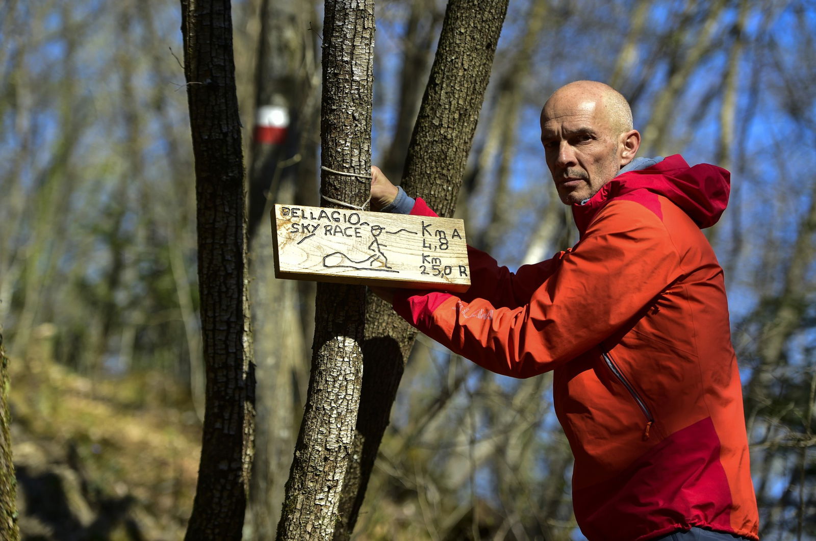 La Luna è solo mezza, ma i fari della Jimny ci aiutano ad avere tutta la luce che ci serve per montare e arredare la canadese, nonostante le azioni di disturbo della bestia. Abbiamo scelto una radura, in mezzo ad alberi altissimi che ci schermano dal vento che spira dal lago e dai rumori degli uomini. Quando chiudi la cerniera della tenda e spegni la torcia ti accorgi di quanto sia popolato il silenzio della natura. Siamo in ottima compagnia. Buona notte.Si sa: quando dormi in tenda ti svegli ai primi raggi di sole. Così, alle 7 eravamo già al volante, con il muso all’insù, verso il crinale che sale al Terrabiotta dove il giorno della gara sarà allestito uno dei ristori. L’aria leggera ci ha dato la carica e in un paio d’ore terminiamo bombolette e nastro, ma abbiamo finito di tracciare.Prima di tornare a calpestar l’asfalto saliamo in vetta a prendere la nostra ricompensa  La giornata è stupenda, il cielo terso regala una vista incredibile che abbraccia tutto l’orizzonte: i grattacieli di Milano, la Grigna, il Monte Rosa, il Legnone, la Svizzera e tutto l’Alto Lario. Sopra di noi solo il cielo; ha lo stesso colore della Jimny.