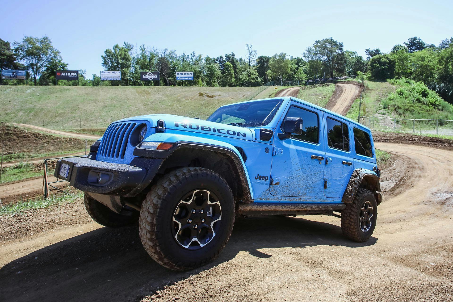 Per evitare sorprese inizio la mia prova con la Wrangler 4xe Rubicon, quella più attrezzata per il fuoristrada. Tra i suoi assi nella manica ci sono anche cerchi da off-road da 17″ con pneumatici da 32 pollici Mud Terrain tassellati. Gli angoli caratteristici sono poi da prima della classe: quello di attacco è pari a 36,6 gradi, quello di dosso a 21,4 gradi, e quello di uscita è di 31,8 gradi. L’altezza da terra è di 25,3 cm.