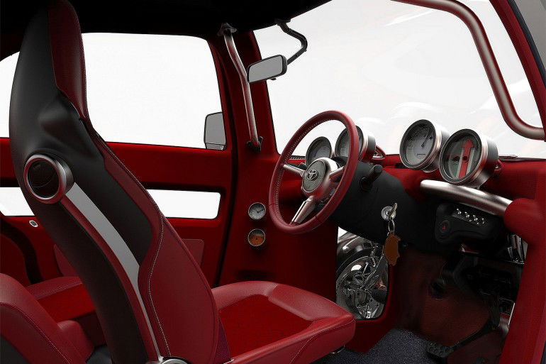 Un abitacolo unico, ma in stile classico: la strumentazione è analogica, mentre l’indicatore del livello carburante è del tipo “a vista”: si tratta infatti di un semplice oblò in corrispondenza del serbatoio. E il propulsore? Sebbene la Casa non abbia rilasciato dati ufficiali, le dimensioni dell’auto lasciano presagire che risponda alla normativa – tipicamente nipponica – sulle kei car; categoria di veicoli caratterizzata da una lunghezza massima di 3,4 metri, da un peso decisamente ridotto e da propulsori di cilindrata e potenza non superiori, rispettivamente, a 660 cc e 64 cv.