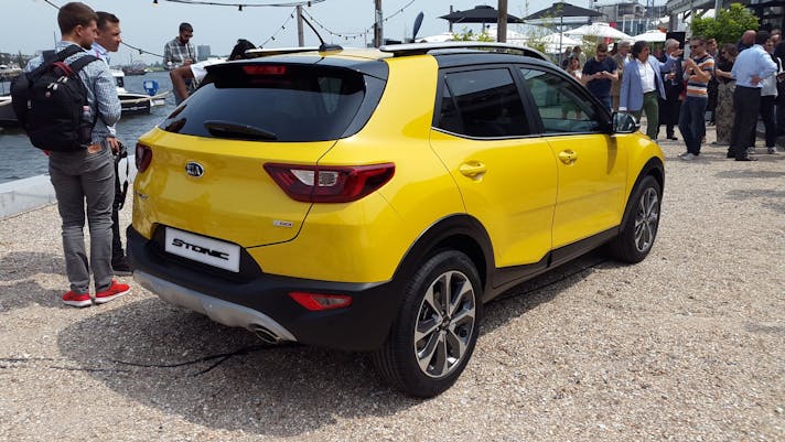 Lunga attorno ai 415 cm, la Kia Stonic ha proporzioni indovinate e trovate di design furbe, che la fanno sembrare atletica e ben tornita. Gli sbalzi sono corti in rapporto al passo, sopra il quale le fiancate sono movimentare da nervature e passaruota muscolosi. Frontale e coda riescono a sembrare grintosi pur restando puliti e lineari, mentre l’elemento più originale è il montante posteriore, che fa risaltare bene la forma del tetto. Quest’ultimo può essere ordinato in cinque diverse colorazioni, facendo salire a venti in numero degli abbinamenti a catalogo.