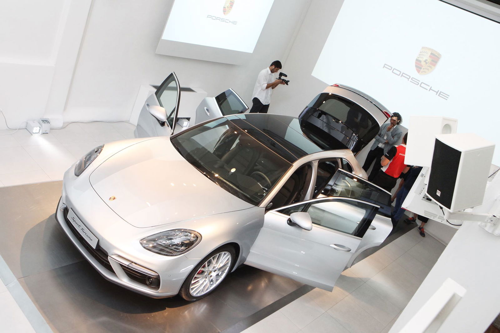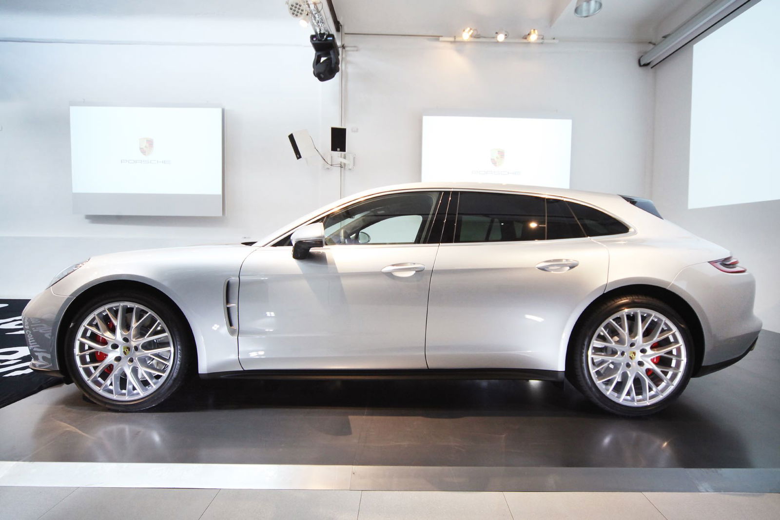 Dopo il debutto in grande stile sulla passerella del Salone di Ginevra e con buon anticipo rispetto alle prime consegne, previste per ottobre, la Porsche Panamera Sport Turismo si è concessa per una prèmiere a pochi intimi, un’occasione imperdibile per osservarla da vicino e conoscerla meglio, lontano dalla chiassosa kermesse elvetica. Vista dal vivo, la nuova nata di Stoccarda fa una gran scena e non fa molto per nascondere i suoi ingombri, che coincidono con quelli della Panamera vulgaris. E’ dunque lunga 5.049 mm, alta 1.428 e larga 1.937, mentre il passo misura 2.950 mm. Al di là dei numeri, le novità si concentrano chiaramente nella coda: il taglio non è più sfuggente e il tetto corre quasi in orizzontale fino allo spoiler che sormonta il lunotto. Quest’ultimo è di tipo adattivo ed è pronto ad alzarsi di 8 o 23 gradi in base alla velocità e alla modalità di guida impostata, generando un carico sulle ruote posteriori fino a 50 kg.