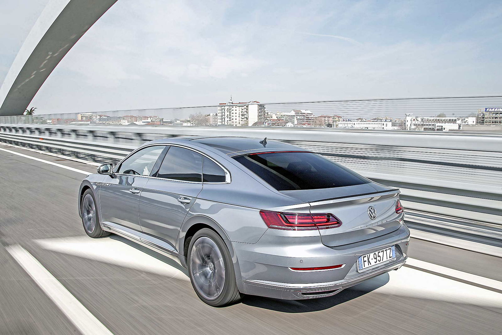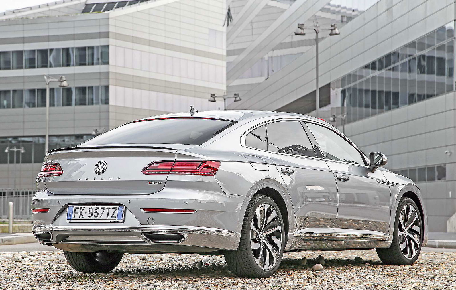 Lunga 4,86 metri e con un passo di 2,84 metri, la Arteon si basa sulla piattaforma modulare MQB già ampiamente utilizzata dal Gruppo VW e condivisa con la Passat. L’altezza di 1,42 metri – 5 cm in meno rispetto alla citata Passat – ne tradisce l’indole da Gran Turismo, rimarcata dalle linee aggressive del frontale che introducono gli stilemi dei futuri modelli Made in Wolfsburg. Ai fari a LED, di serie per tutte le versioni, si accompagna la “fusione” tra la mascherina e i gruppi ottici, mentre il cofano motore è solcato da inedite nervature e la zona posteriore, stile fastback, presenta montanti sottili, slanciati, che non appesantiscono la linea.