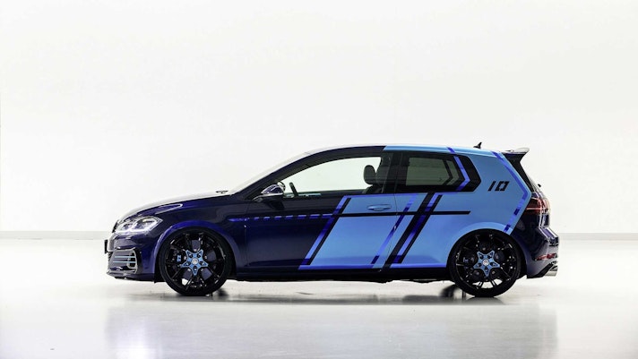 Frutto dell’estro di un gruppo di dipendentiProgettata in nove mesi – una vera e propria gestazione – da un gruppo di tredici dipendenti Volkswagen, la GTI Fist Decade celebra la decennale presenza della Casa di Wolfsburg al Wörthersee Meeting. Sottopelle pulsa un powertrain ibrido da 410 cv che vede il consueto 4 cilindri 2.0 turbo a iniezione diretta della benzina lavorare congiuntamente a un’unità elettrica alimentata mediante una batteria da 12 kWh. Non si tratta, diversamente dalla “cugina” GTE, di un sistema plug in, quindi con gli accumulatori ricaricabili mediante una presa di corrente esterna, bensì di un’interpretazione “pura” dell’ibrido.Cerchi in lega da 20 polliciTra le particolarità della GTI Fist Decade spiccano la disponibilità di una rete elettrica a 48 Volt – un’innovazione tecnica portata al debutto dalla SUV Audi SQ7 – e la presenza di un sistema evoluto di recupero dell’energia in frenata. A livello estetico, la vettura beneficia di una livrea multicolore basata su diverse tonalità di blu e mutua dalla versione Clubsport lo spoiler al tetto. Degni di una show car i cerchi in lega da 20 pollici e l’impianto audio da 1.690 Watt corredato di 11 altoparlanti e di un subwoofer king size. Al di là di questi particolari, decisamente in tema con un raduno tuning quale il Wörthersee Meeting, la GTI Fist Decade sembra essere tutt’altro che un prototipo. Vedremo presto debuttare la prima Golf GTI ibrida di serie?