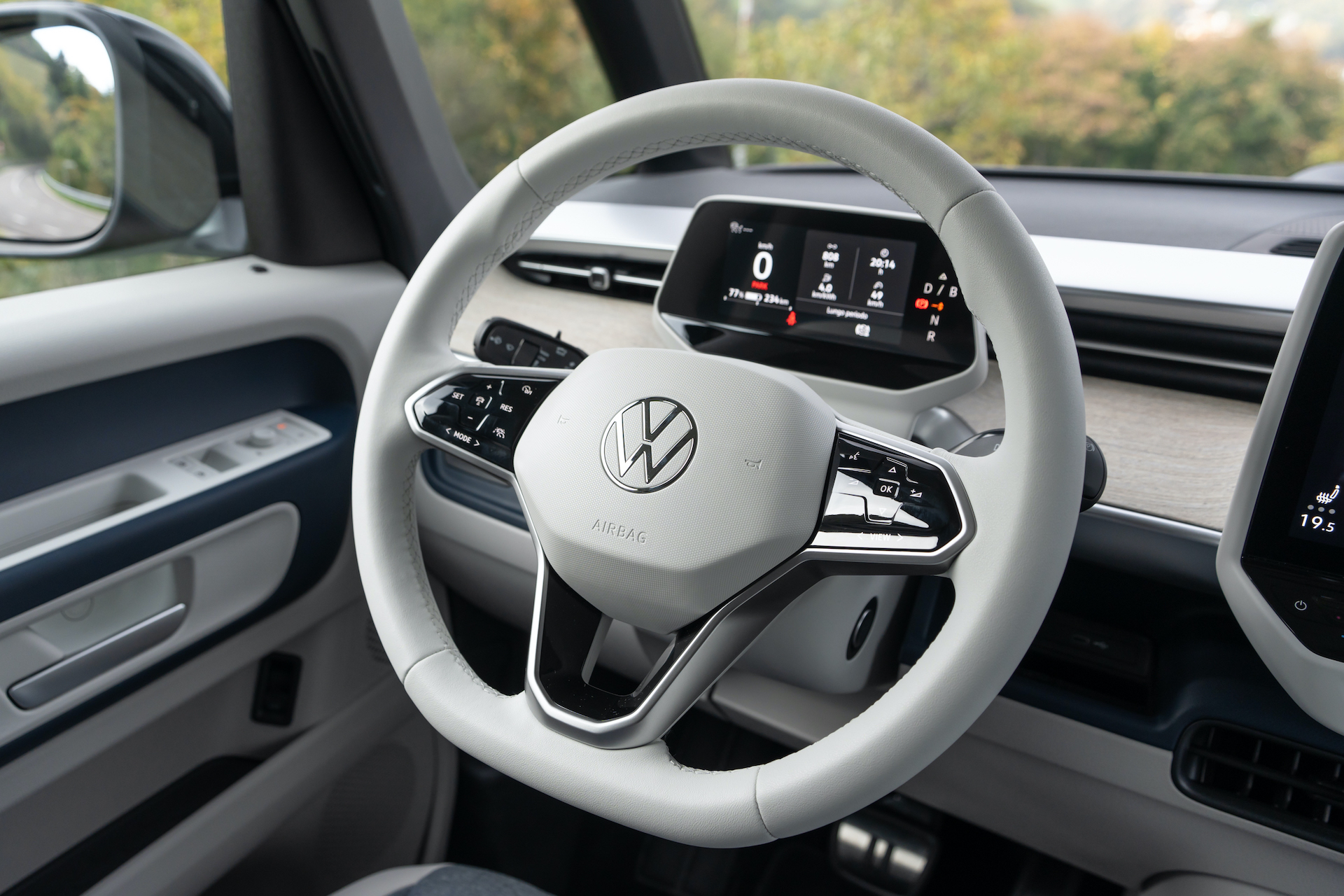 Entra in curva rapidamente, è sicuro in appoggio e, in virtù del motore e della trazione posteriori (che liberano le ruote anteriori da coppia e peso), riesce persino a regalare un discreto feeling di sterzo. Il tutto sia chiaro, va messo in relazione alla tipologia di veicolo di cui stiamo parlando: ovviamente una ID.3 – che a sua volta non è una sportiva – è più reattiva e precisa, però il Bulli elettrico si muove molto bene nel misto. Un vantaggio anche e soprattutto se si viaggia con qualcuno che soffre l’auto: qui i movimenti della scocca sono limitati al minimo, per un veicolo altro 1,93 metri.