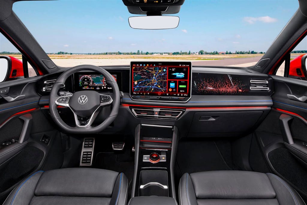 Gli interni della Tiguan sono stati rinnovati. L’elevata qualità dei materiali e delle finiture, i dettagli opzionali come le cuciture decorative e i contrasti cromatici nelle superfici sono soluzioni da categorie superiori. Proprio per questo la nuova Tiguan si presenta più che mai come la sorella gemella più compatta della grande Touareg. A bordo i componenti del MIB4 si fondono in una nuova zona del cockpit: i moduli includono il nuovo Digital Cockpit (strumentazione digitale antiriflesso dall’aspetto di un tablet disposto in orizzontale), un ampio display dell’infotainment con grafica e struttura dei menu completamente nuove, un display head-up altrettanto nuovo (proiezioni sul parabrezza) e un nuovo rotore multifunzione per i driving mode con display OLED integrato. Il nuovo assistente vocale IDA2 consente di comandare numerose funzioni del veicolo e del sistema infotainment, come il volume audio, semplicemente tramite un comando vocale basato sul linguaggio naturale.