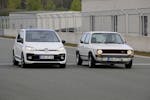 BEL PEPERINOFra la prima Golf GTI del 1976 e la Volkswagen up! GTI ci sono 42 anni di differenza, ma le dimensioni (si vede anche ad occhio nudo) e la potenza sono molto simili. Il tre cilindri TSI a benzina da 999 cc che muove la up! al peperoncino eroga infatti 115 CV fra i 5.000 e i 5.500 giri, conditi con 200 Nm fra i 2.000 e i 3.500 giri e un cambio manuale a 6 marce. All’epoca, la Golf sviluppava 110 CV dal suo quattro cilindri 1.6 aspirato con iniezione Bosch K-Jetronic. Sembrava un mostro….