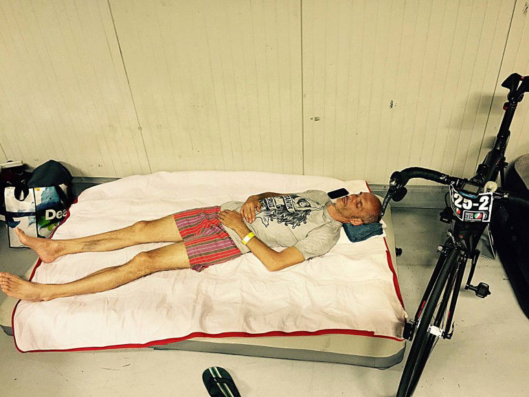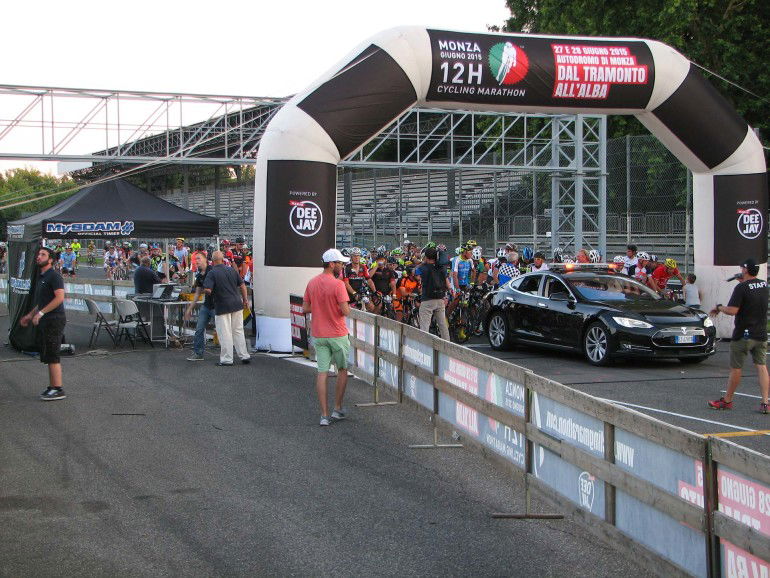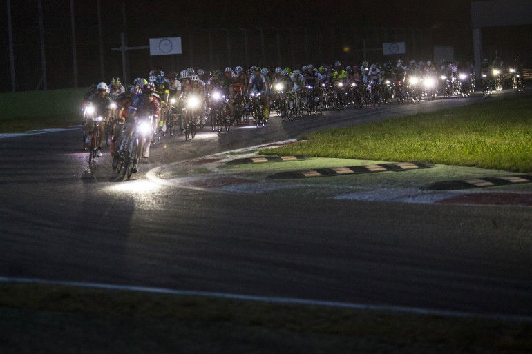 PrologoEra da più di un anno che aspettavamo questo momento. Da quando Andrea Massimello e Aldo Rock sono venuti a trovarmi per illustrarmi quella che allora era solo un’idea, ma già piuttosto chiara. Chiaro era soprattutto lo spirito da cui aveva preso vita, ossia portare le bici in autodromo per una grande festa che offrisse sia la possibilità di scannarsi per la vittoria, sia l’emozione di pedalare in un luogo magico, condividendo l’esperienza con amici intrisi della stessa passione ed entusiasmo.In realtà l’idea non è inedita dato che in Francia già da qualche anno si corre a LeMans la versione senza motore della 24 Ore. Lo è, però, per il nostro Paese. Il fatto, poi, che si potesse organizzare sulla pista dietro casa un evento simile mi aveva subito affascinato e coinvolto. Andrea ne aveva già parlato con gli amici di Radio Deejay (ecco il perché della presenza di Aldo), che avevano deciso di sposare il progetto: non restava che trovare un accordo con l’autodromo di Monza e mettere in piedi la cosa… Appunto! Capire che l’ipotesi originaria, ossia organizzare una gara di 24 ore che si corresse l’estate stessa, fosse quantomeno azzardata fu quasi immediato. E altrettanto rapida fu la decisione di Andrea: “Ok! 12 ore, dal tramonto all’alba, da soli o in team… Quest’anno facciamo solo un numero zero, un warm-up come nella F1, un’edizione di lancio da correre esattamente un anno prima di quella ufficiale. E chi girerà più veloce avrà l’iscrizione gratis”.Il 27 giugno 2014, sotto il diluvio di un temporale estivo, davanti ai cancelli dei paddock si sono presentatati più di cento ciclisti, carichi e curiosi. Il mattino di un buon giorno.Gli uominiIn redazione se ne parlava da qualche mese, anche se poi, alla resa dei conti, solo in tre abbiamo barrato la casella del calendario, bloccando ogni eventuale impedimento o ripensamento. Gli assenti? Qualcuno scusato perché ai nastri di partenza della Hero, qualcun altro perché ad Assen con Sky per seguire il Motomondiale e qualcuno invece inchiodato a casa dai suoi doveri familiari.Per arrivare a otto componenti del team sono cominciate le telefonate ad amici e parenti, in ordine di chilometraggio annuale. Non c’è stato nemmeno bisogno di ricorrere alle seconde scelte. La proposta era di quelle che non si possono rifiutare, anche perché gli organizzatori ci avevano ufficialmente invitati e addirittura riservato un box, come i team seri. Gli otto si sono formati in un attimo, grazie anche all’entusiasmo di Massimo Boglia (collega e volto di Bike Channel) e alla carità cristiana di Marco Saligari, anche lui in forza a Bike Channel, che aveva assicurato che, non appena chiusa la sua pizzeria, si sarebbe teletrasportato a Monza per pedalare nei turni con la luna.Carichi ed eleganti, grazie a Briko che ci ha vestiti e accessoriati di tutto punto, ci siamo da subito preoccupati dell’aspetto nutrizionale della gara. O meglio, gastronomico, poiché sulla lista della spesa si leggevano chiaramente le parole “torta, biscotti, nutella, salamelle, carbonella e persino anguria”! Per fortuna la mia consulente preferita (Elena Casiraghi dell’equipe Enervit), oltre che a inviarci una buona dose di pre sport, sali e gel, mi ha persuaso a depennare le voci “salamelle” e “carbonella”, sostituendole con le più consone “panini” e “prosciutto crudo”.L’insediamentoAppuntamento in autodromo verso metà pomeriggio per espletare con comodo le formalità dell’iscrizione, portare le bici alle verifiche (proprio come se fossero moto) e allestire il box con il kit da campeggio anni 80 che Stefano C ha rubato dalla cantina dei genitori. Tardo un po’ perché la sdraio da mare manca di un pezzo necessario per tenerla insieme: tappa da Decathlon per cercare qualcosa di comodo su cui riposare fra un turno e l’altro. Ma si sa, alla Decathlon sono tante le cose tra cui scegliere: così prima di decidere se comprare il materassino gonfiabile da 190×120, la pompa a piede da 7,90 euro di pompa o quella a mano da 12,90 ci ho messo un po’. Fatto sta che quando sono arrivato il nostro nido era già pronto, e anche tutto il resto, così da team manager sono stato declassato a mascotte.Dopo dieci minuti si apre la porta ed entra Max Boglia, con chitarra a tracolla… L’apoteosi! Ora sembriamo davvero un gruppo di liceali pronti per una settimana di campeggio, con scorte di cibo sufficienti per sopravvivere ai postumi di un guerra atomica. Comprese due angurie e 24 bottiglie d’acqua. Chissà cosa pensano di noi i quattro atleti del team Brooks, fra i quali l’ironman Daniel Fontana, con cui dividiamo il box. E comunque anche loro a un certo punto hanno montato un banchetto Beretta e l’hanno riempito di salamini e pasta in scatola da scaldare al microonde…La tenzoneAlle 19 scatta il pasta-party, imperdibile rifornimento di carboidrati sin dai tempi di Fiorenzo Magni. Dopo una fila da esodo biblico ci ritroviamo in mano un piatto di maccheroni con l’olio, che sotterriamo di parmigiano come una discarica abusiva. Ora l’avventura è davvero cominciata.E la strategia di gara? “Chi parte per primo?” “Ma facciamo a giri o a tempo?” Ognuno dice la sua e alla fine ci accordiamo: mezz’ora in pista e poi si rientra, a occhio e croce sono quattro giri. Prendiamo due fogli di scottex e scriviamo l’ordine dei cambi. Ok, ora si fa sul serio. Il tempo comincia a volare e non faccio nemmeno in tempo a regolare la sella e le tacchette sotto alle scarpe nuove che dagli altoparlanti chiamano gli atleti alla partenza.12HCyclingMonza-028Per noi comincia Max Boglia. È quello più abituato a pedalare in gruppo, e anche quello con la gamba migliore. Poi, a seguire, in ordine alfabetico Bencio (Bencini), Carta, Corda(ra), Marti(gnoni), Miglia(vacca), Riva…Che emozione! Sono una marea schierati dietro alla Tesla (apripista di una manifestazione veramente a impatto zero) che guiderà i corri