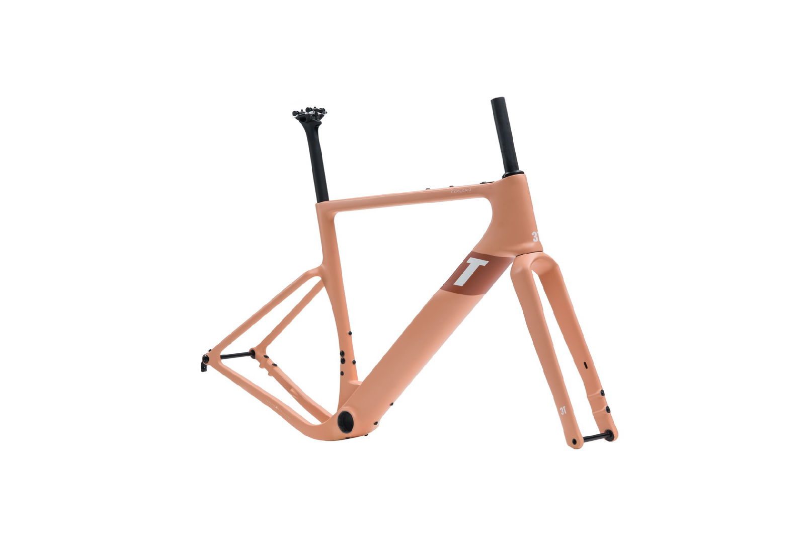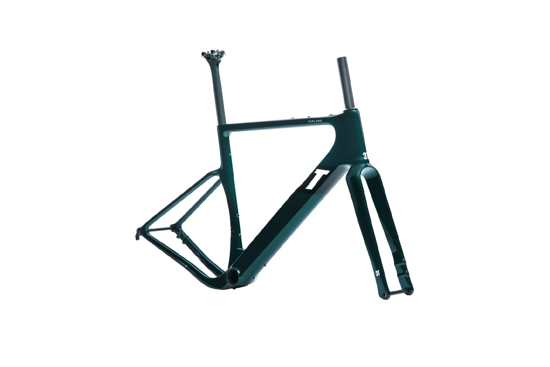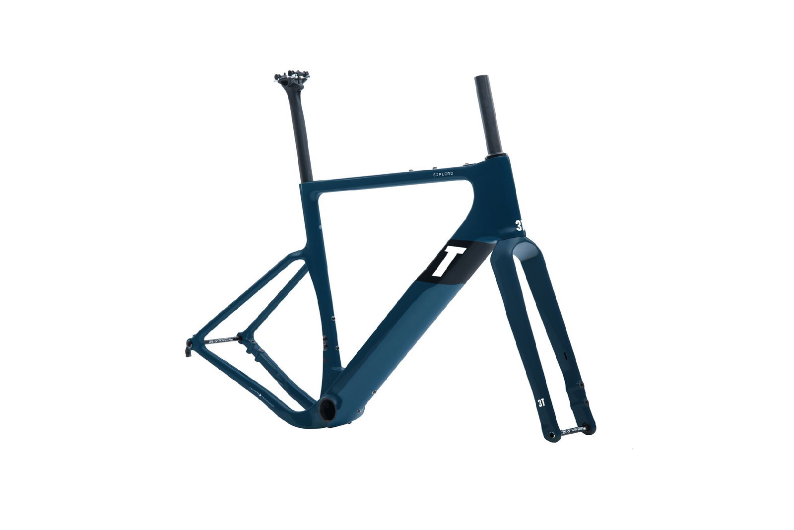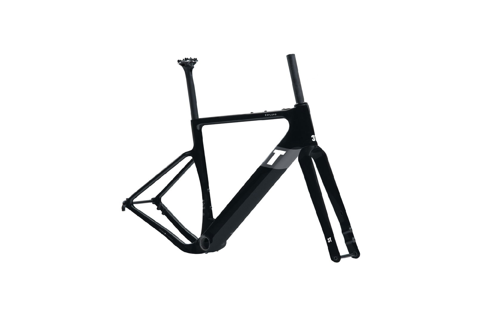 Exploro Ultra è una estremizzazione del concetto di Gravel secondo 3T: si differenza dalle altre due versioni perché il suo telaio in fibra di carbonio è disegnato aerodinamicamente per lavorare al meglio con pneumatici di sezione generosa (fino a 61 mm, montando ruote 650b). Più nello specifico, significa che il tubo diagonale e il tubo verticale sono sagomati per generare meno turbolenze possibili quando si montano coperture di sezione “importante”, che predispongono una bici del genere all’hard gravel, a un gravel che quasi sconfina nel mountain biking.