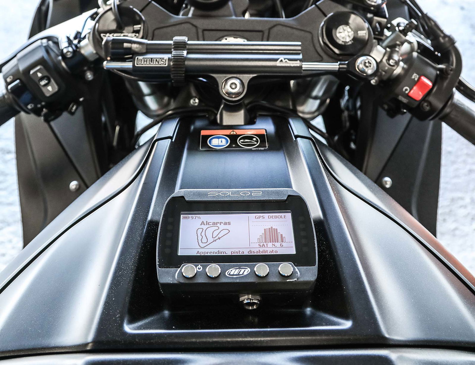 A chi non basta, AiM propone il Solo 2 DL che può collegarsi alla ECU e registrare anche i dati del motore. Utilissimo per i track day sia auto che moto, nel caso delle moto sconta perà dimensioni poco compatte, che potrebbero rendere problematico il fissaggio.