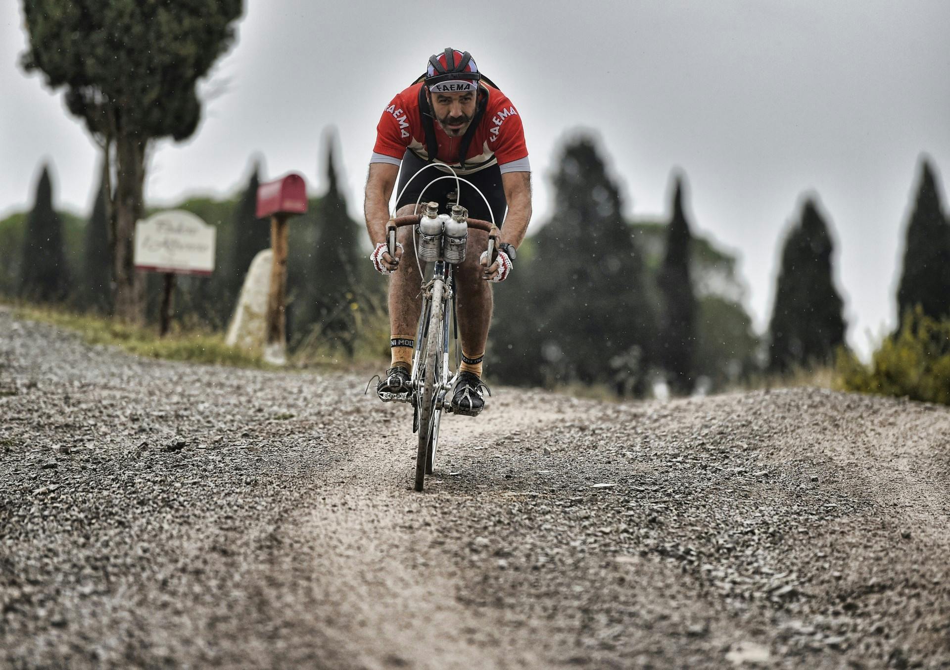Abbiamo deciso di seguire la 200 km, così da percorrere tutta o quasi la varietà dei paesaggi che l’Eroica attraversa. Sì, perché “riscoperta delle radici autentiche del Ciclismo” a parte, questo evento è uno straordinario esempio di valorizzazione del territorio e del patrimonio ambientale; e quanto sia efficace me lo hanno fatto capire due francesi con la maglia bianca e nera della Peugeot che, sullo sfondo delle Crete, cadenzavano la pedalata a suon di “incroyable… fantastique…” e un americano della West Coast al bis di Chianti e tris di ribollita, sotto la pioggia del ristoro di Asciano, a 150 km dalla partenza e 50 all’arrivo.