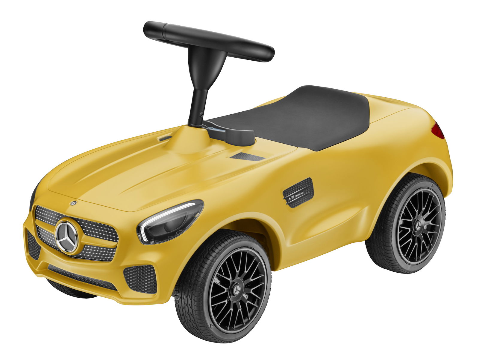 È dedicata agli automobilisti in erba (dai 18 mesi in su), la Bobby-AMG GT S firmata dal colosso di Stoccarda. I fari anteriori e posteriori sono a LED e il colore giallo della livrea richiama quello della Mercedes-AMG GT S guidata dagli adulti. Il modello offre una posizione di seduta ergonomica su un tappetino in gomma nera. Per info: shop.mercedes-benz.com